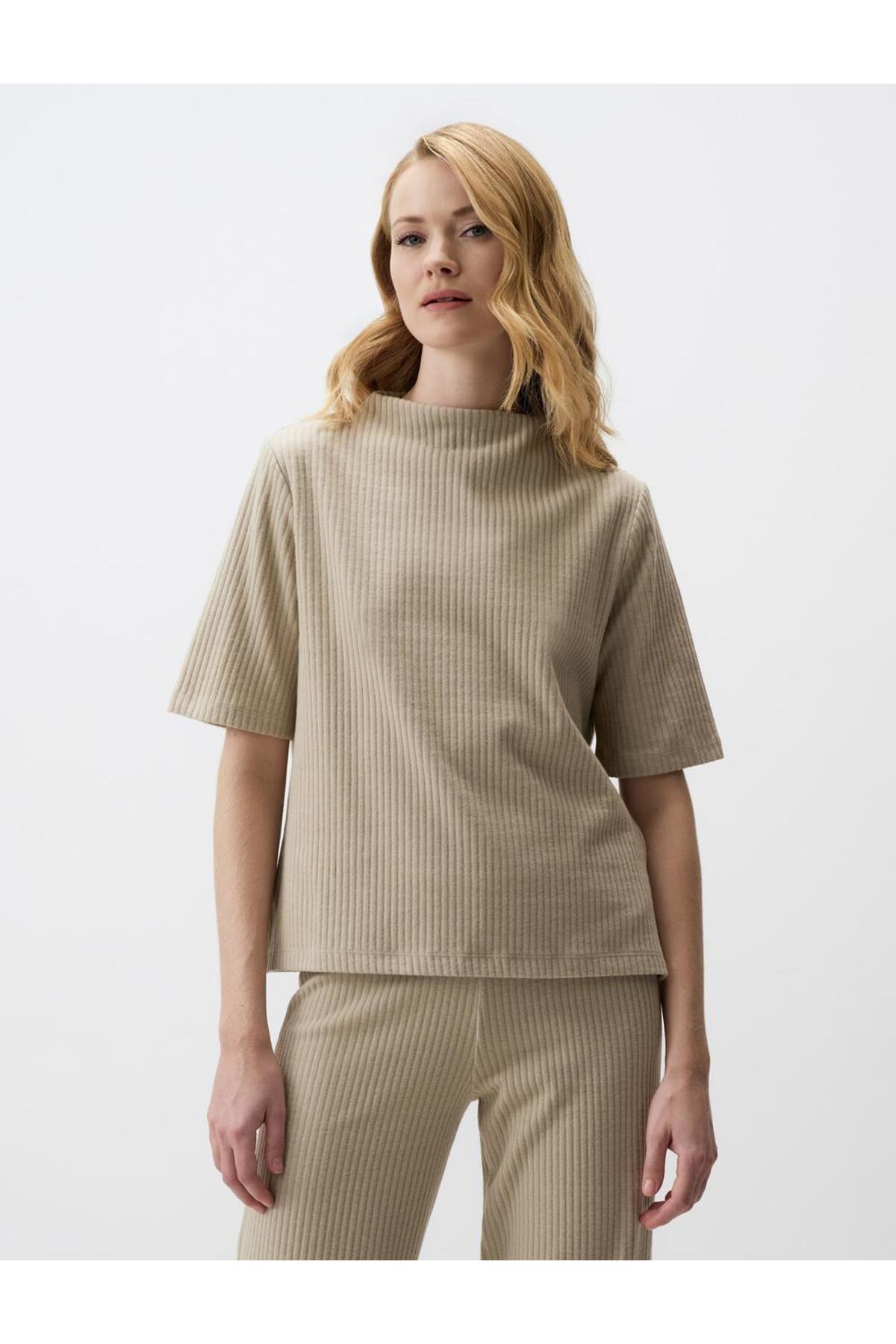 Lacivert Kısa Kollu Bisiklet Yaka Desenli Örme Bluz Lacivert Kısa Kollu Bisiklet Yaka Desenli Örme Bluz 5WW035623 XL