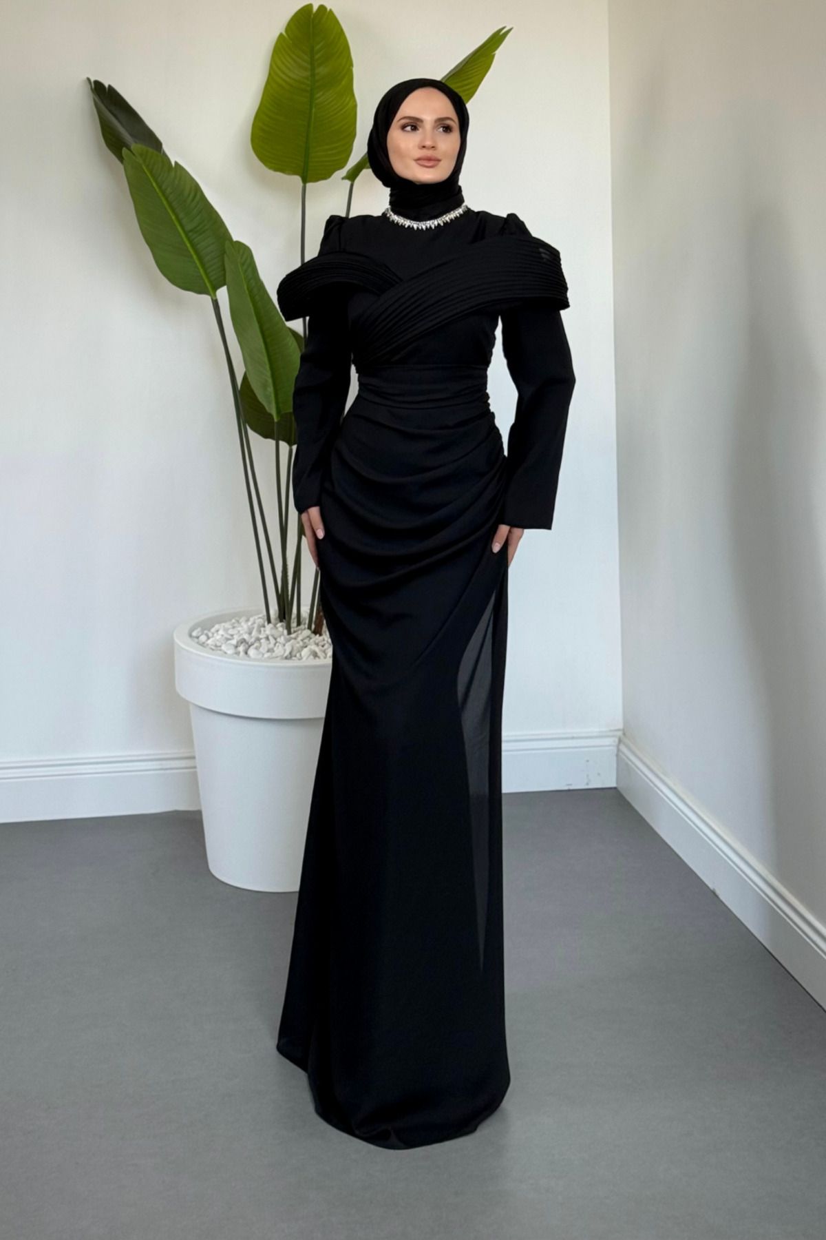 Lyra Pelerinli Balık Abiye Siyah Lyra Pelerinli Balık Abiye Siyah 4783 44