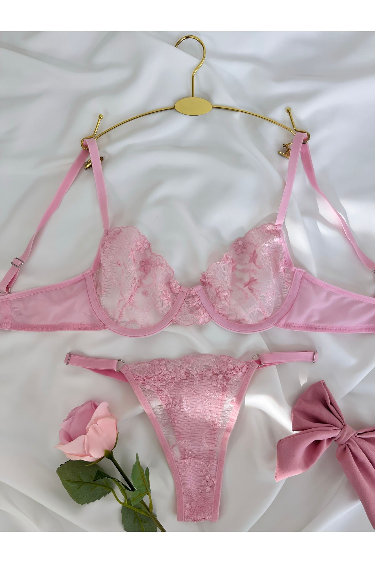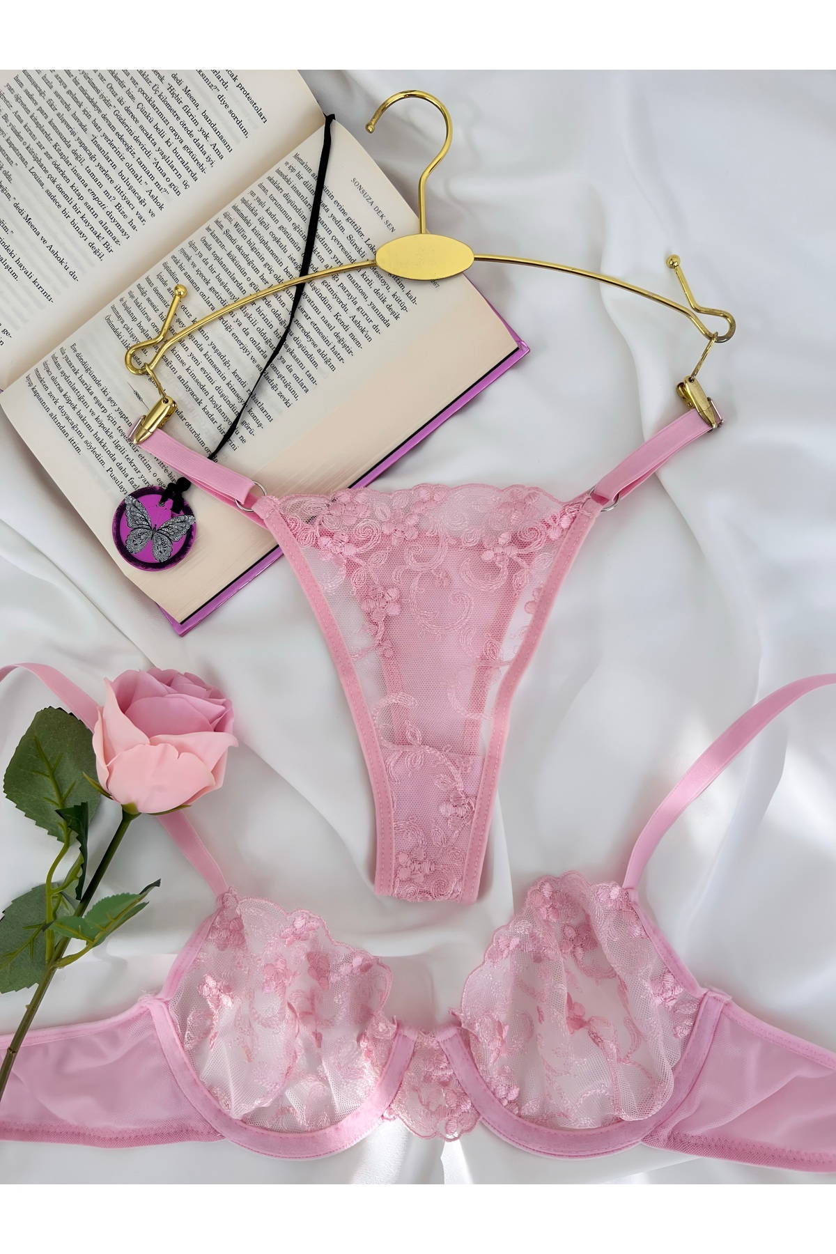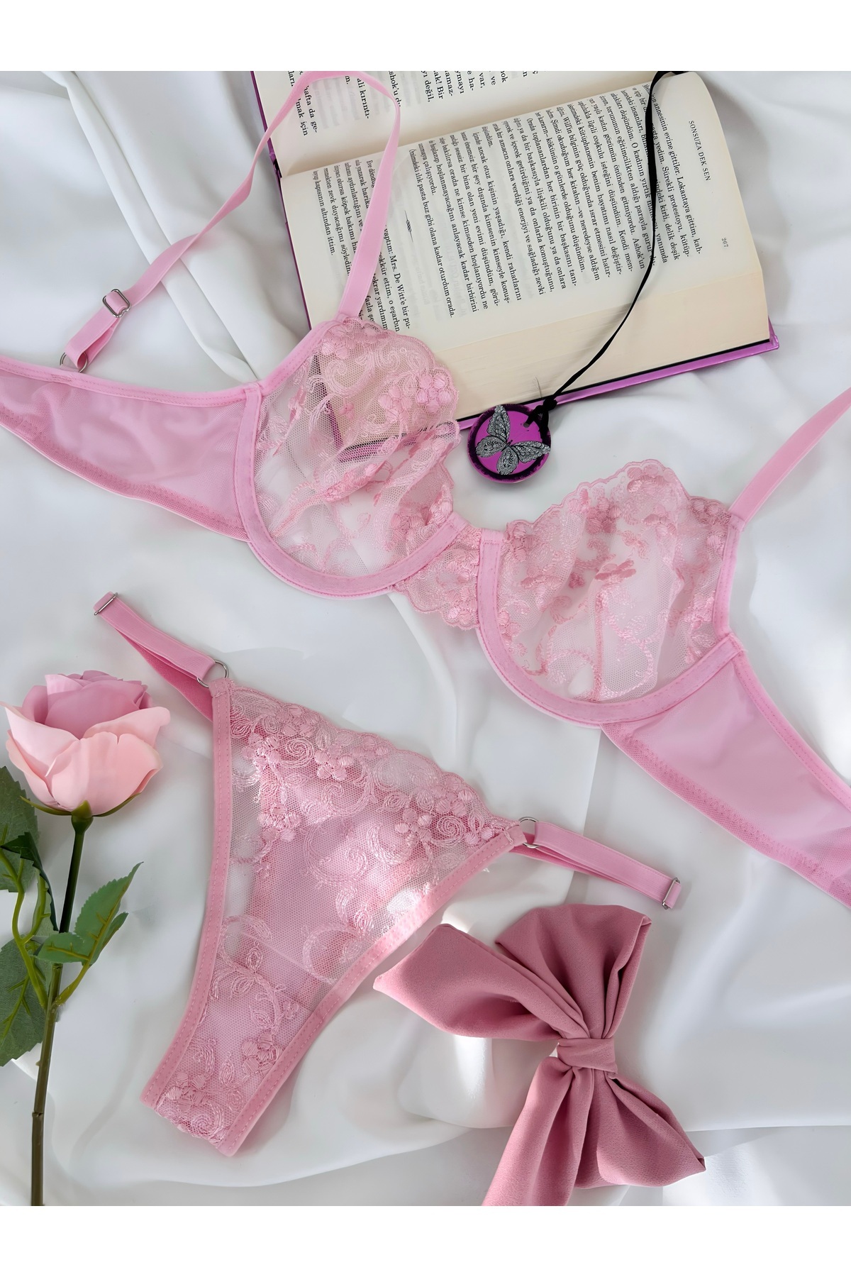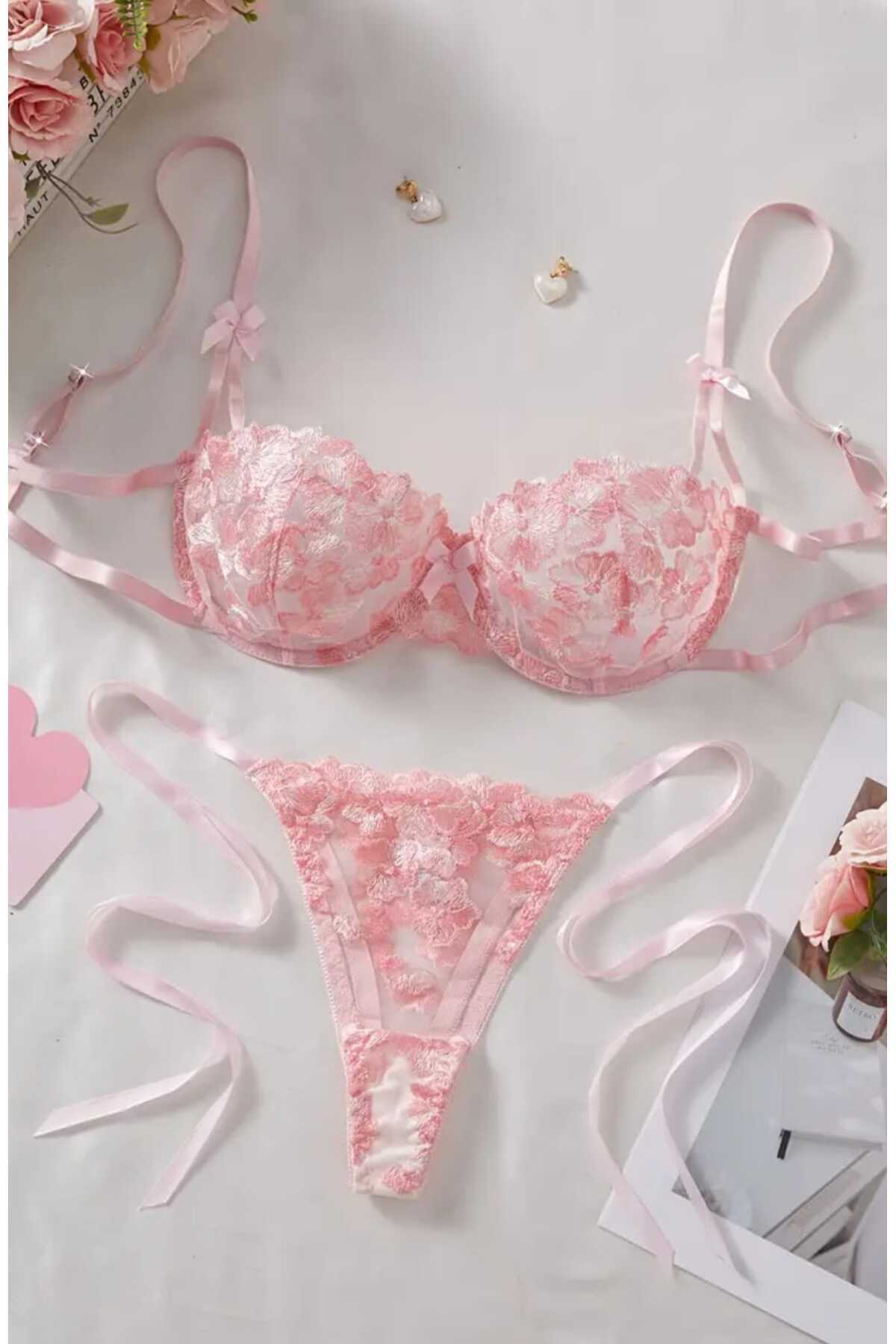 Çiçek Desenli Tek Renk Balenli Kapsız Sütyen Tanga Brode İç Çamaşırı Takımı Çiçek Desenli Tek Renk Balenli Kapsız Sütyen Tanga Brode İç Çamaşırı Takımı çiçek011 90B