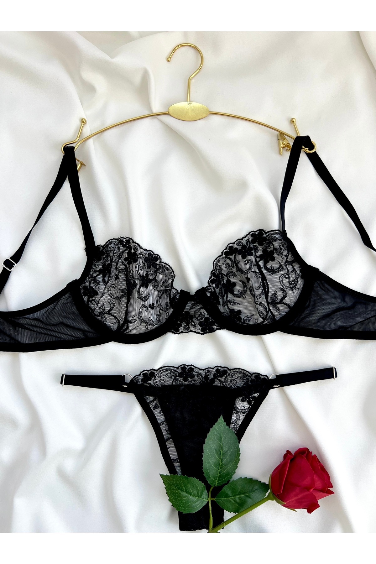 Çiçek Desenli Tek Renk Balenli Kapsız Sütyen Tanga Brode İç Çamaşırı Takımı Çiçek Desenli Tek Renk Balenli Kapsız Sütyen Tanga Brode İç Çamaşırı Takımı çiçek011 90B
