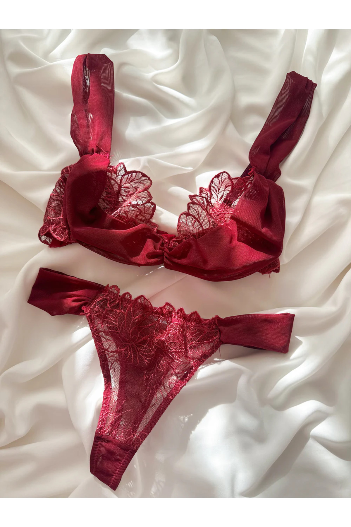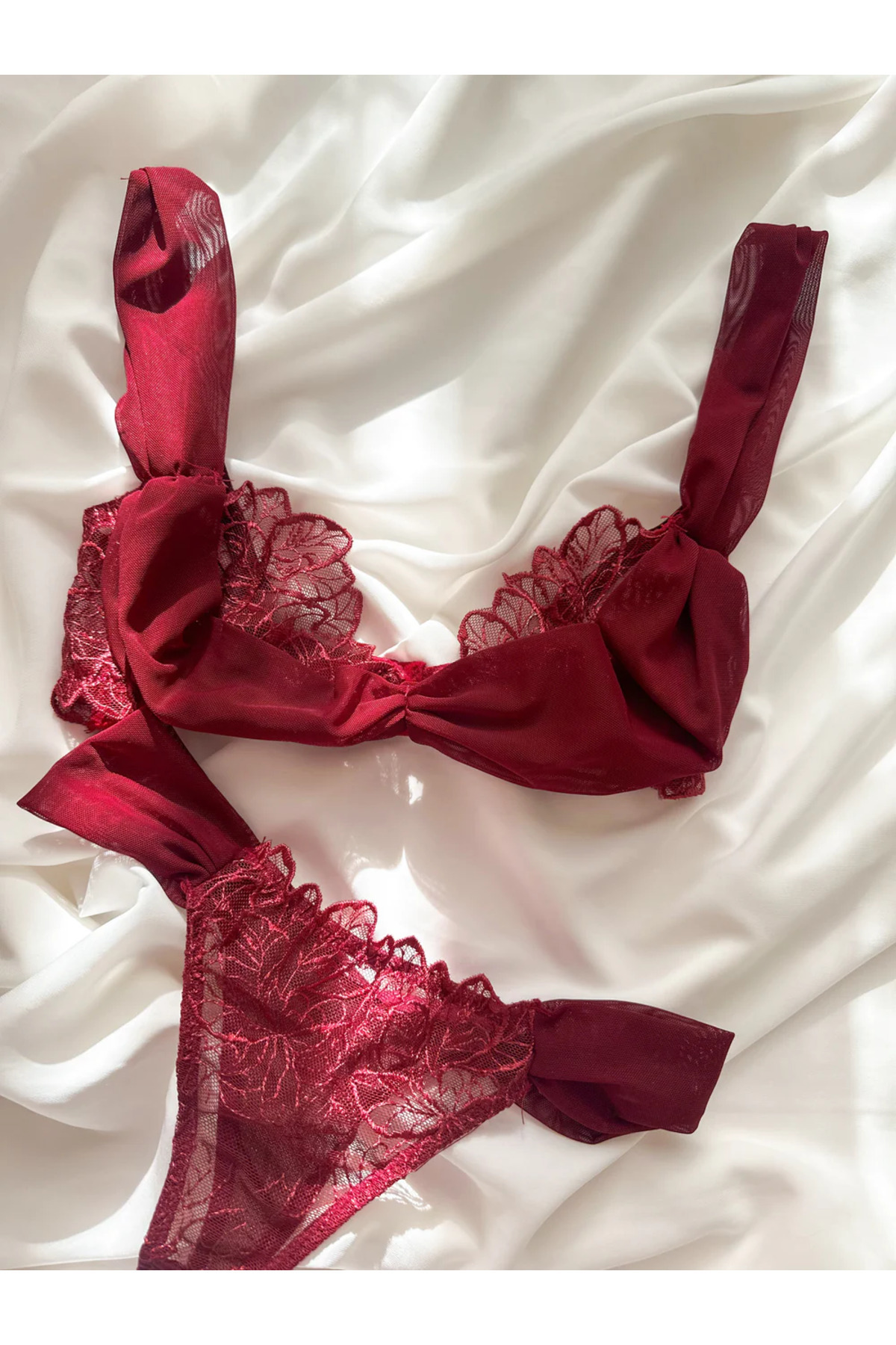 Mi Amor Tül Detaylı Balenli Balkonet Sütyen Takımı Bordo Mi Amor Tül Detaylı Balenli Balkonet Sütyen Takımı Bordo miamorbordo