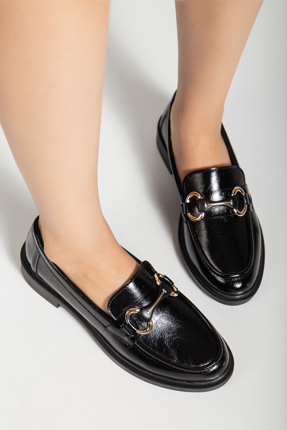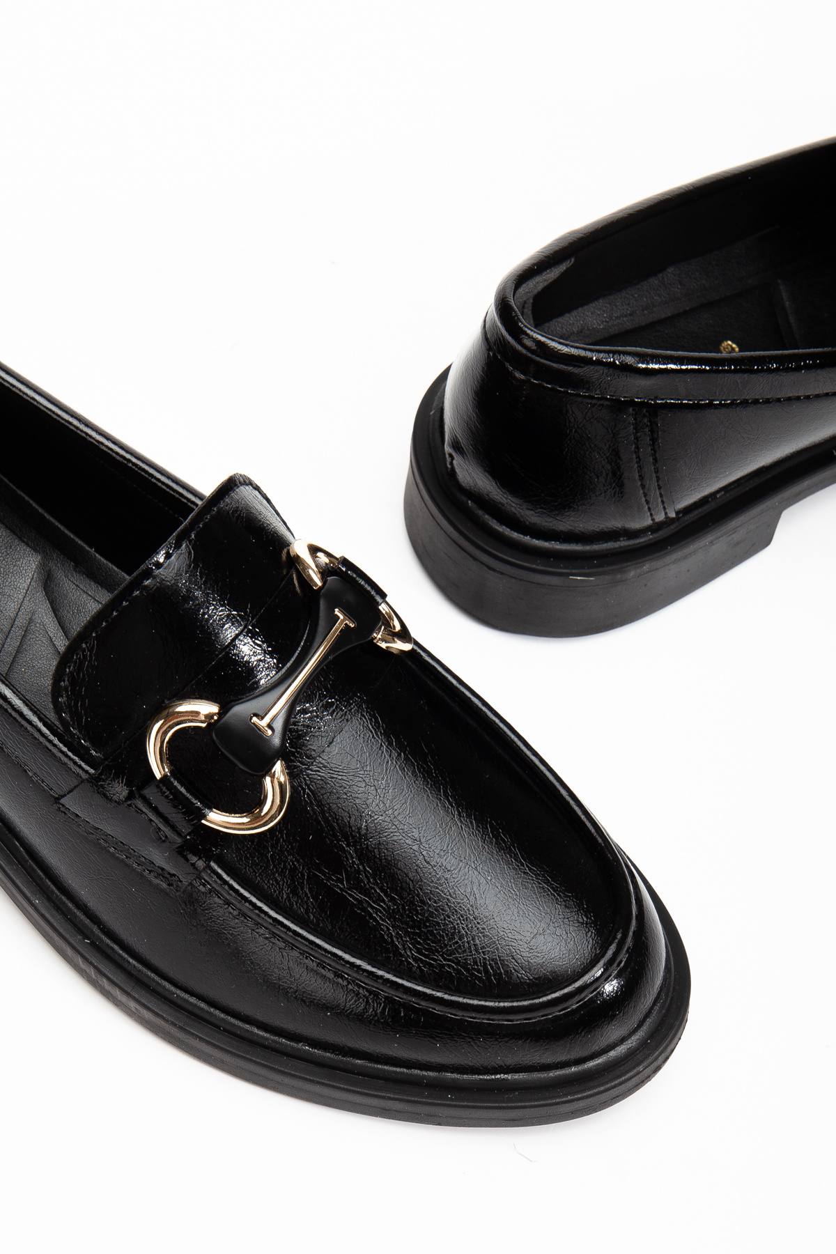 Kadın Siyah Parlak Cilt Toka Detaylı Loafer Ayakkabı Kadın Siyah Parlak Cilt Toka Detaylı Loafer Ayakkabı BBT-001 40