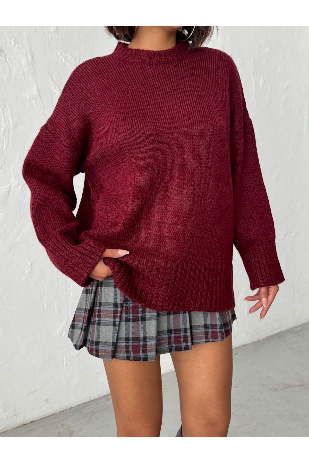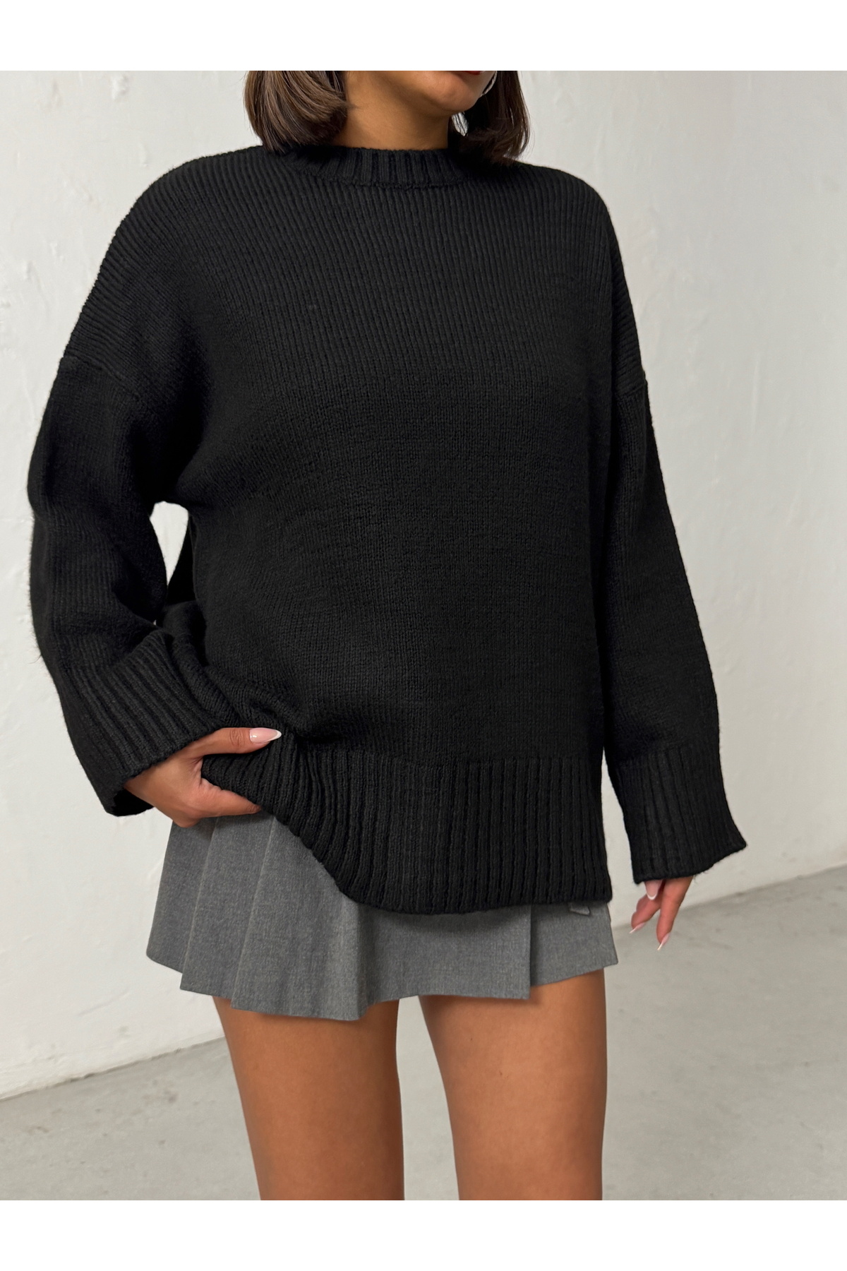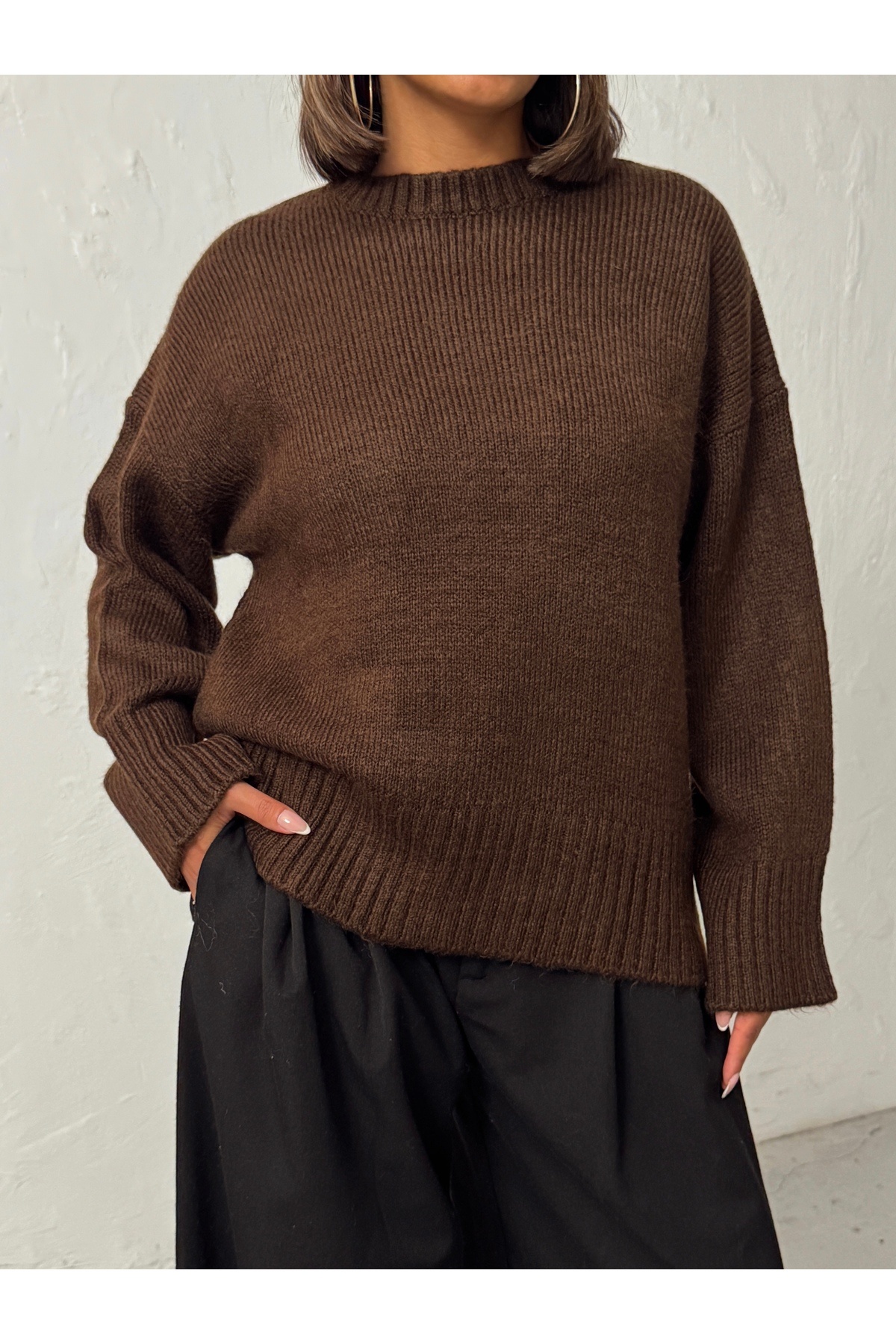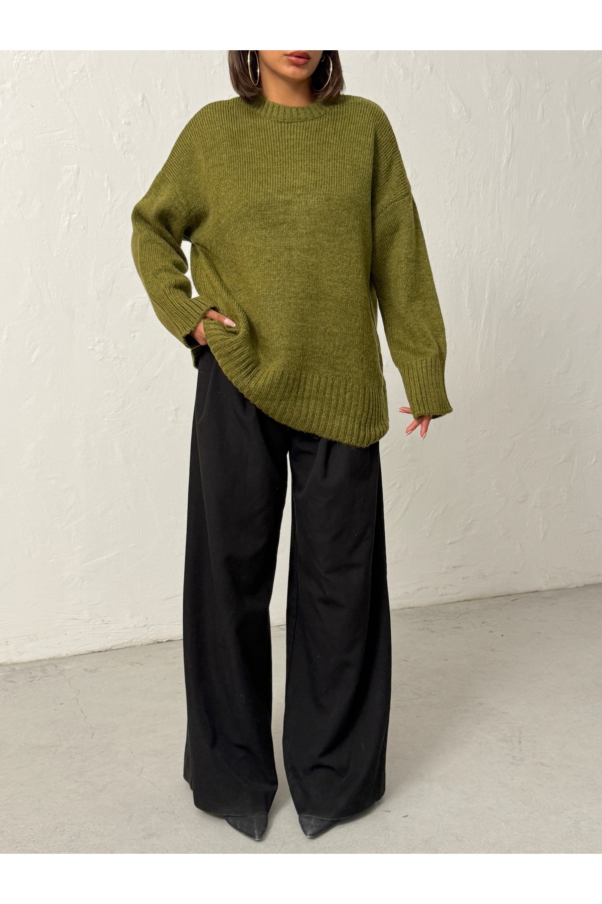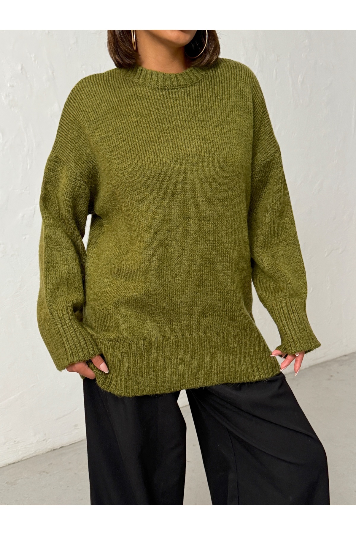 Kadın Haki Yumuşak Dokulu Bisiklet Yaka Oversize Basic Triko Kazak Kadın Haki Yumuşak Dokulu Bisiklet Yaka Oversize Basic Triko Kazak BJN653 M/L