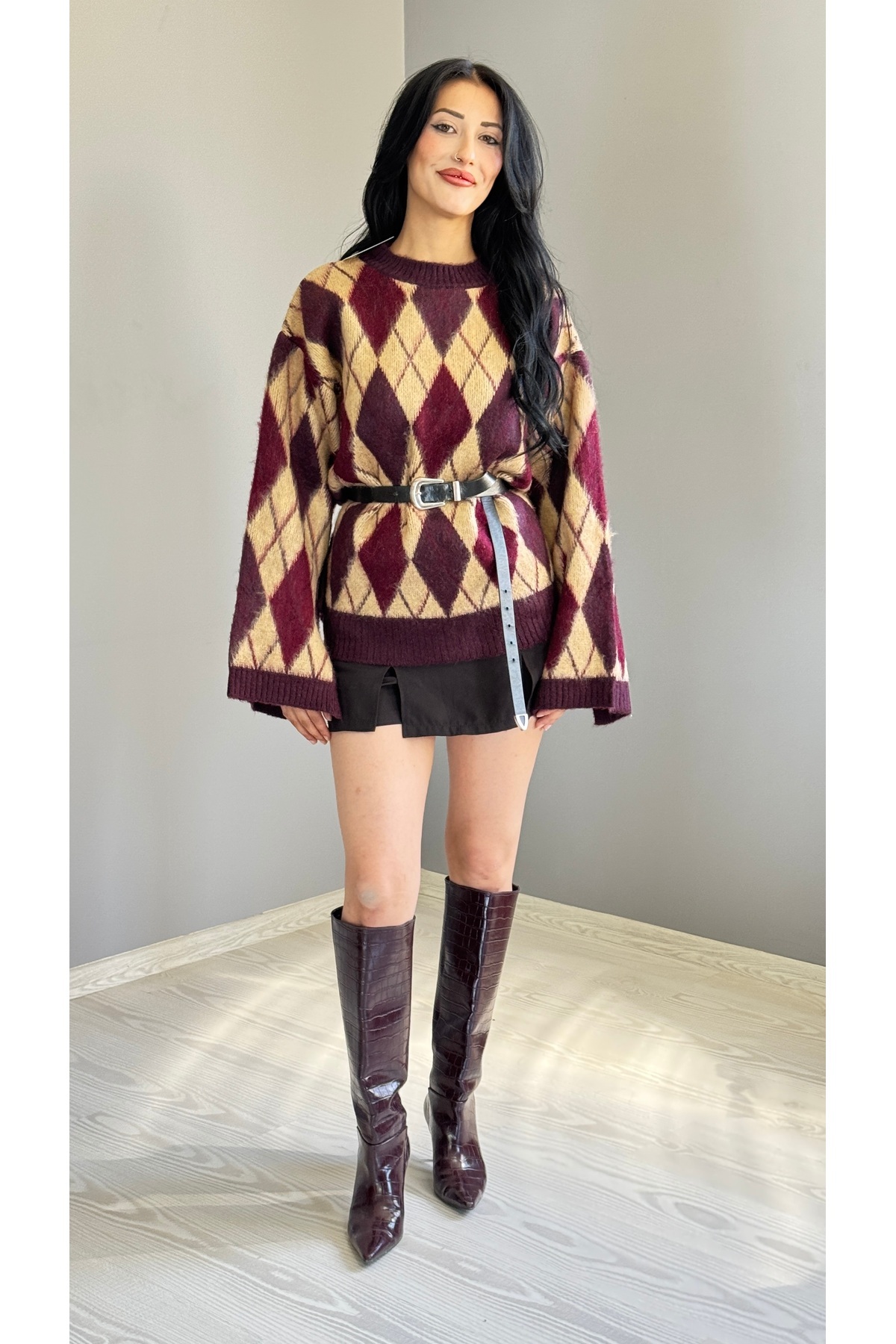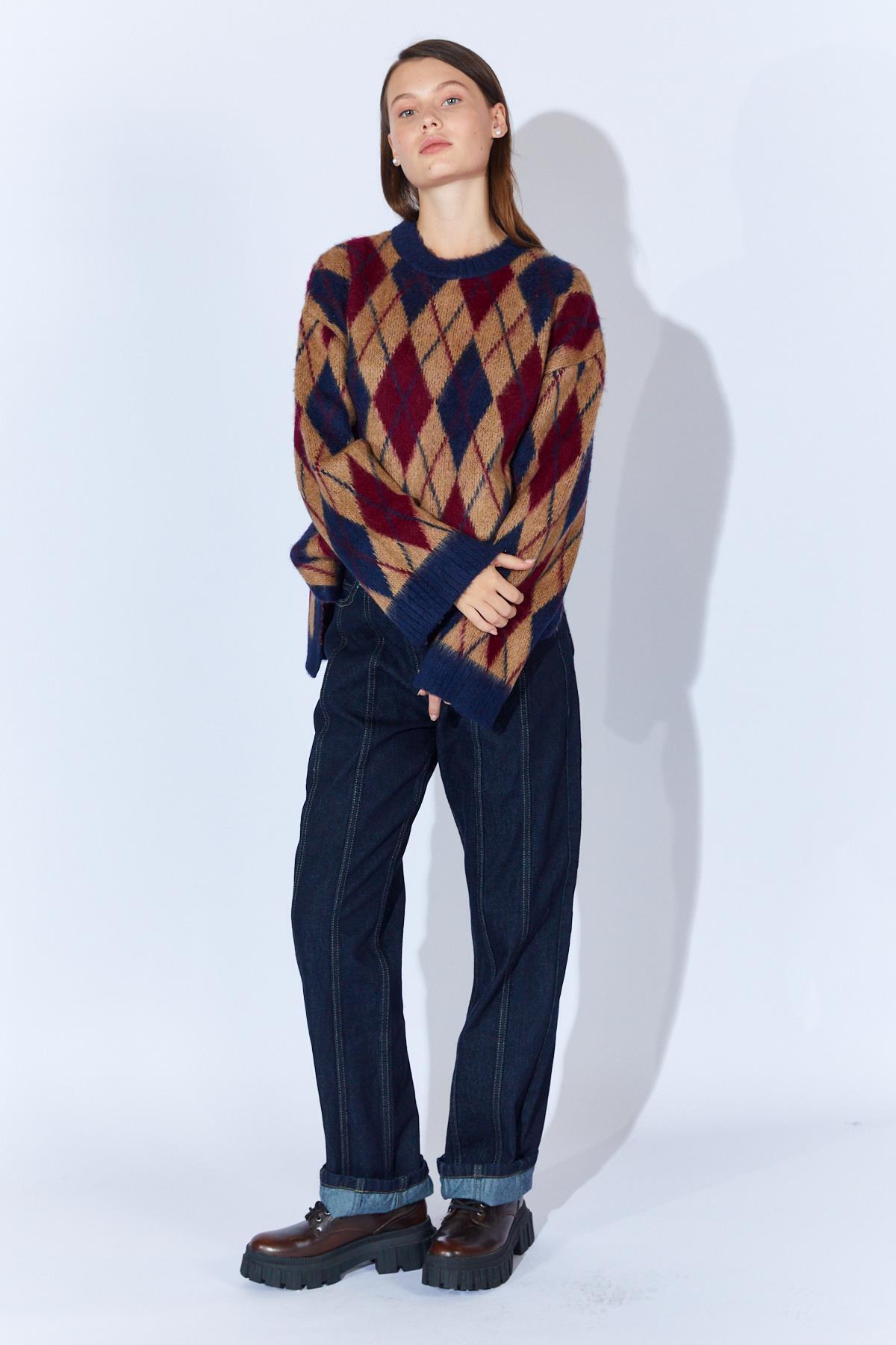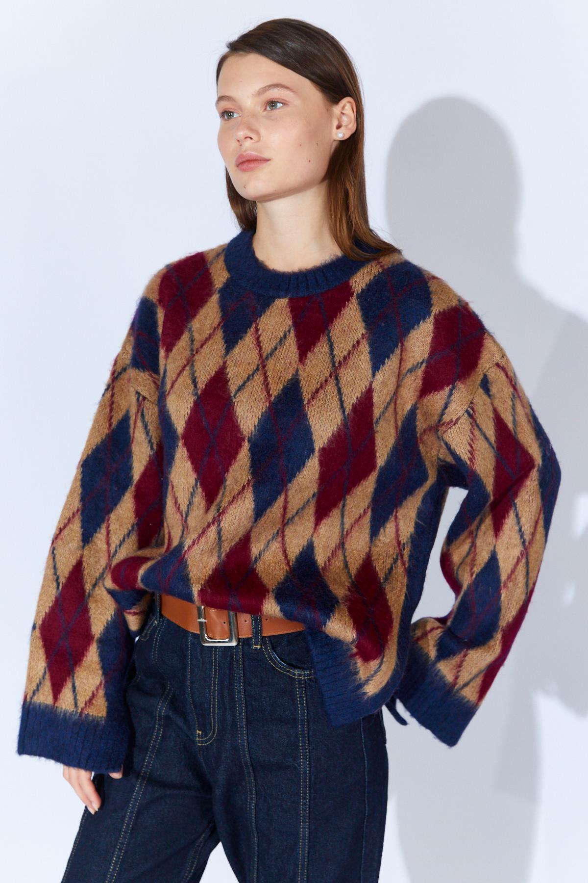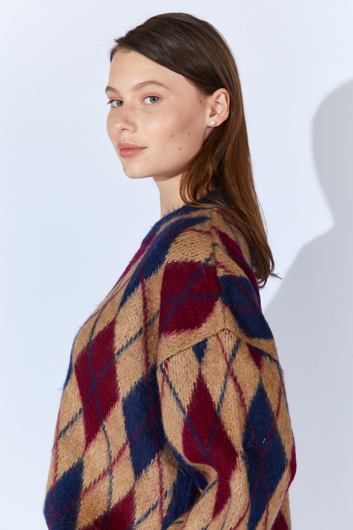 Kadın Lacivert Baklava Desenli Şardonlu Salaş Triko Kazak Kadın Lacivert Baklava Desenli Şardonlu Salaş Triko Kazak 5KKK53-5334 Standart