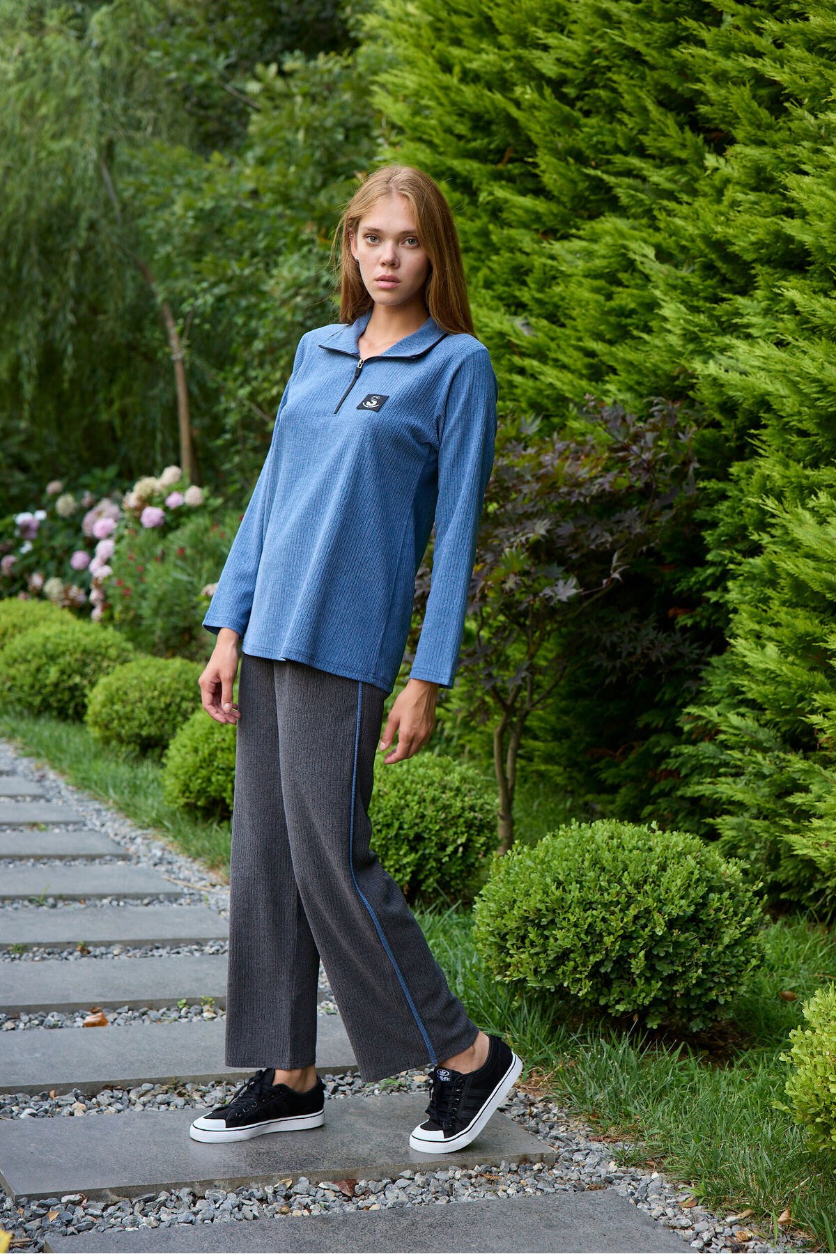 Mavi Havana Kumaş Hafif, Rahat ve Nefes Alabilen Yarım Fermuarlı Uzun Kol Pijama Takım Mavi Havana Kumaş Hafif, Rahat ve Nefes Alabilen Yarım Fermuarlı Uzun Kol Pijama Takım 3601 2XL