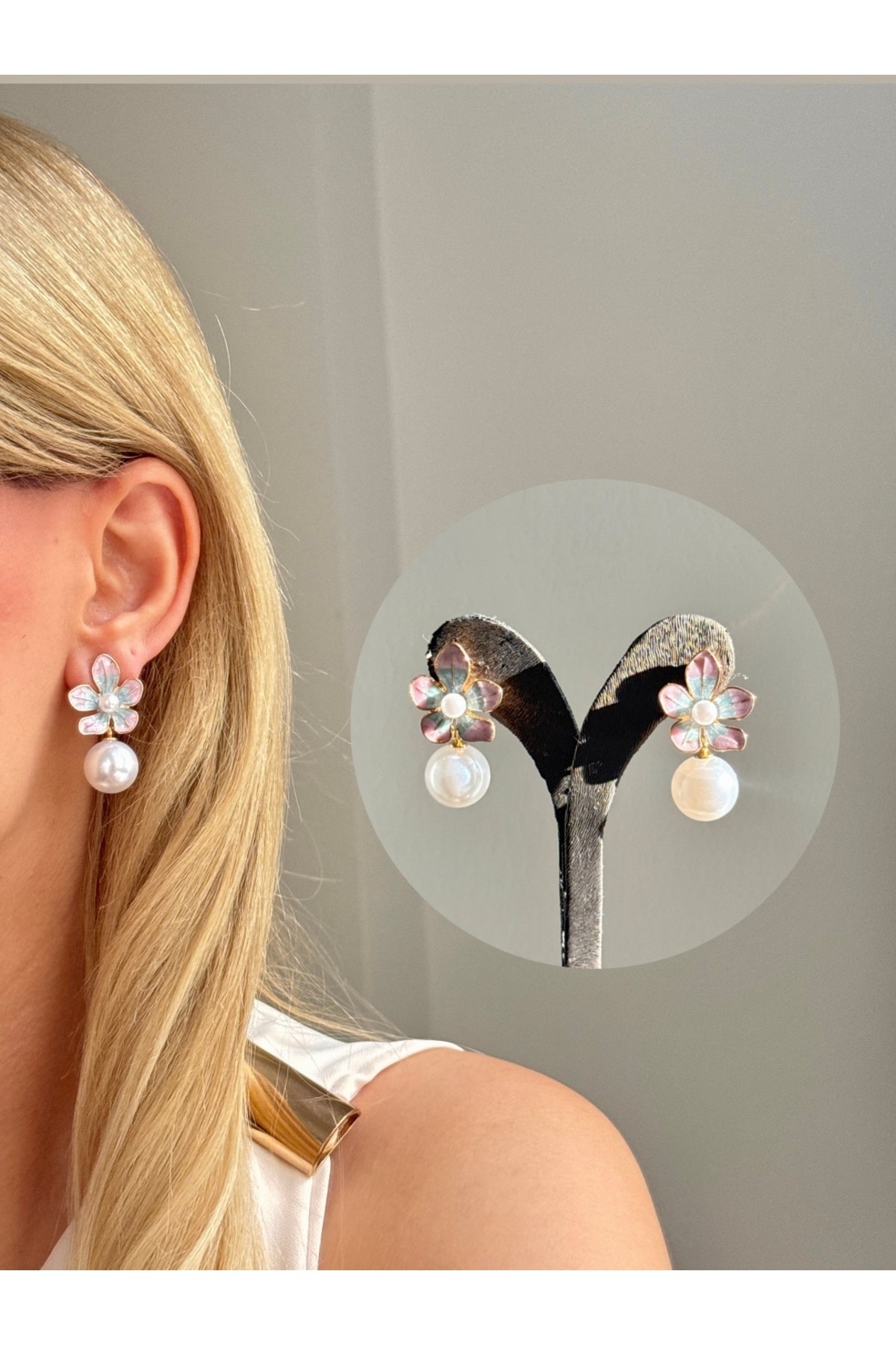 Çelik Çiçek Desenli Mavi Renkli Kadın Küpe Çelik Çiçek Desenli Mavi Renkli Kadın Küpe TYYouescck تک سایز