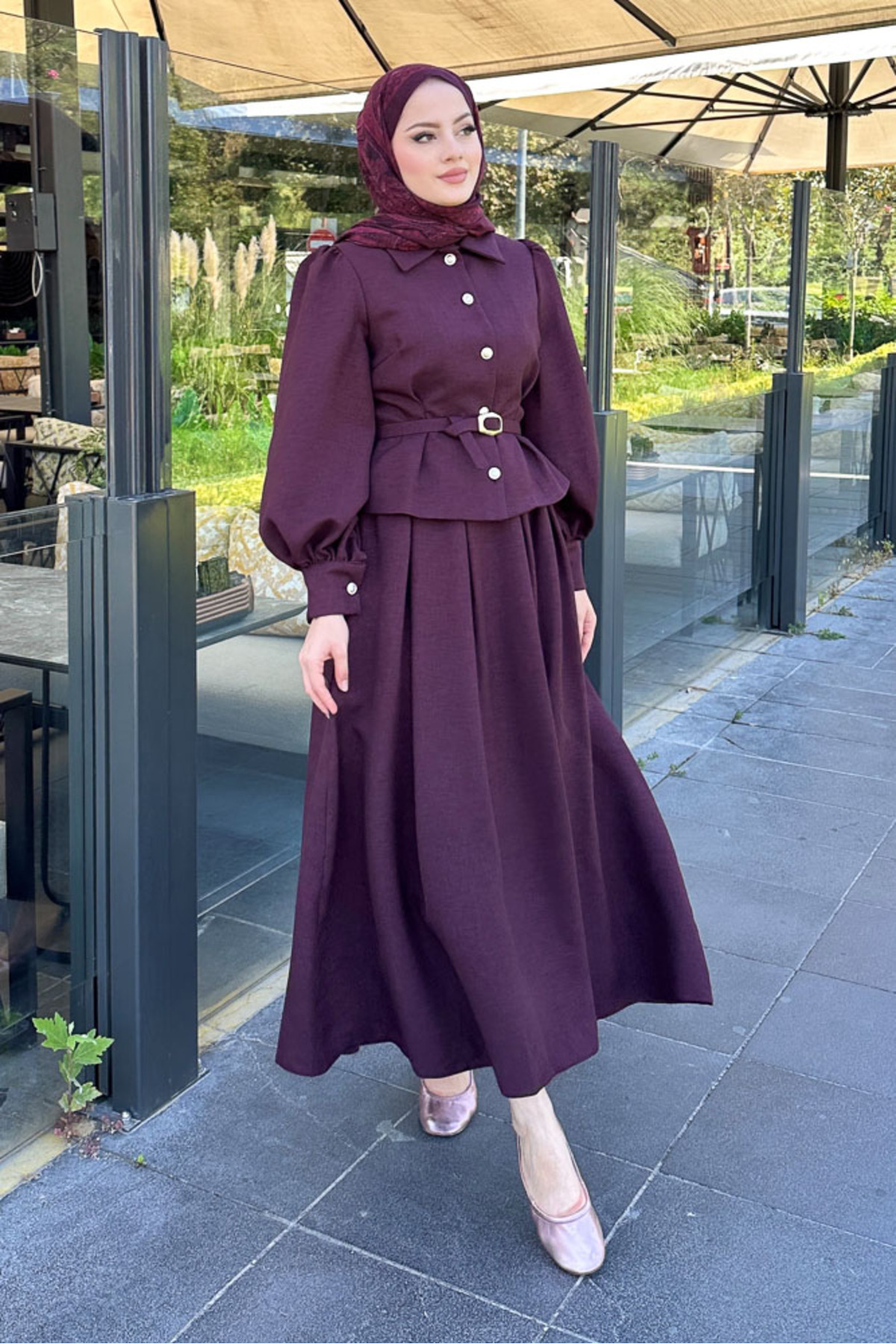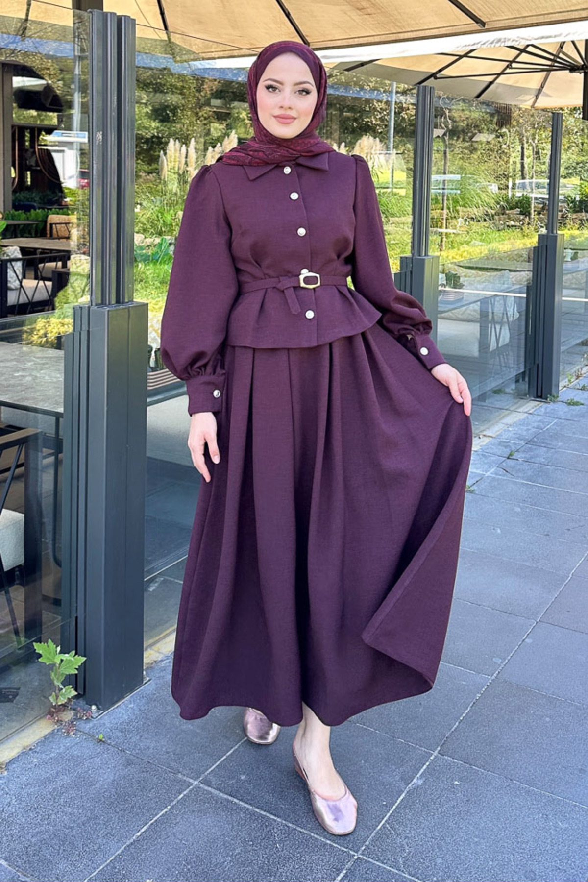 Kael Kemerli Etekli Takım - Bordo Kael Kemerli Etekli Takım - Bordo 3072 XL