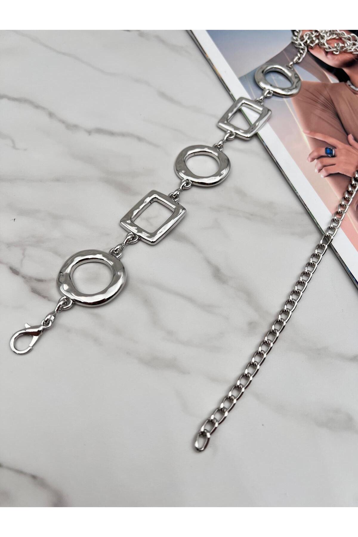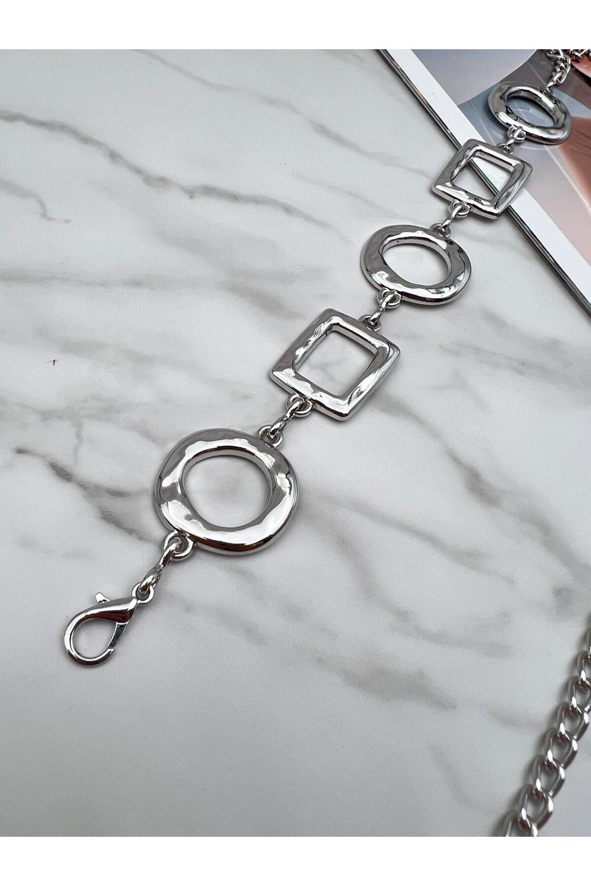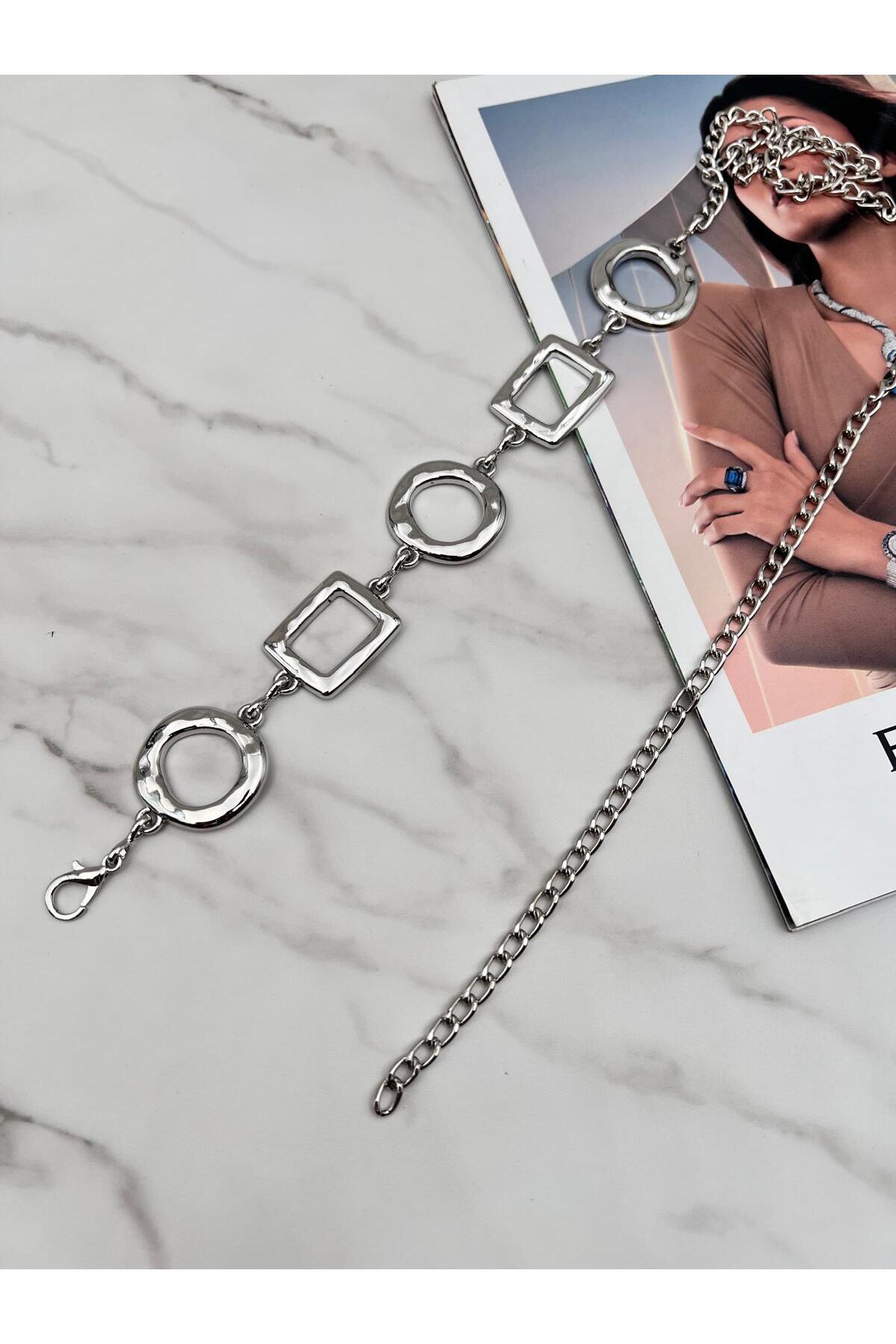 Gümüş/Yuvarlak Kare Detaylı Kadın Kemeri,Ceket Kemeri,Bel Kemeri,Pantalon Kemeri Gümüş/Yuvarlak Kare Detaylı Kadın Kemeri,Ceket Kemeri,Bel Kemeri,Pantalon Kemeri EMR40 110 CM