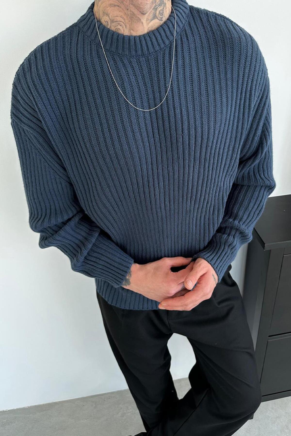 Gri Bisiklet Yaka Fitilli Oversize Triko Kazak Gri Bisiklet Yaka Fitilli Oversize Triko Kazak HF0018-MH-K XL