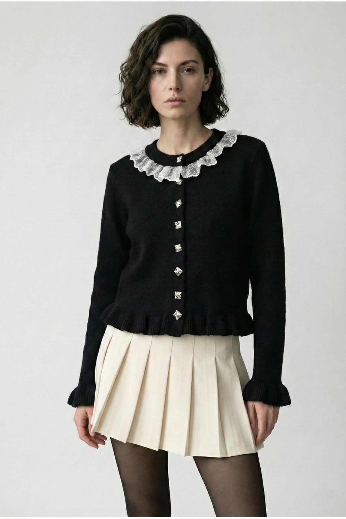Yaka fırfırlı düğmeli hırka Yaka fırfırlı düğmeli hırka lx1234c XL