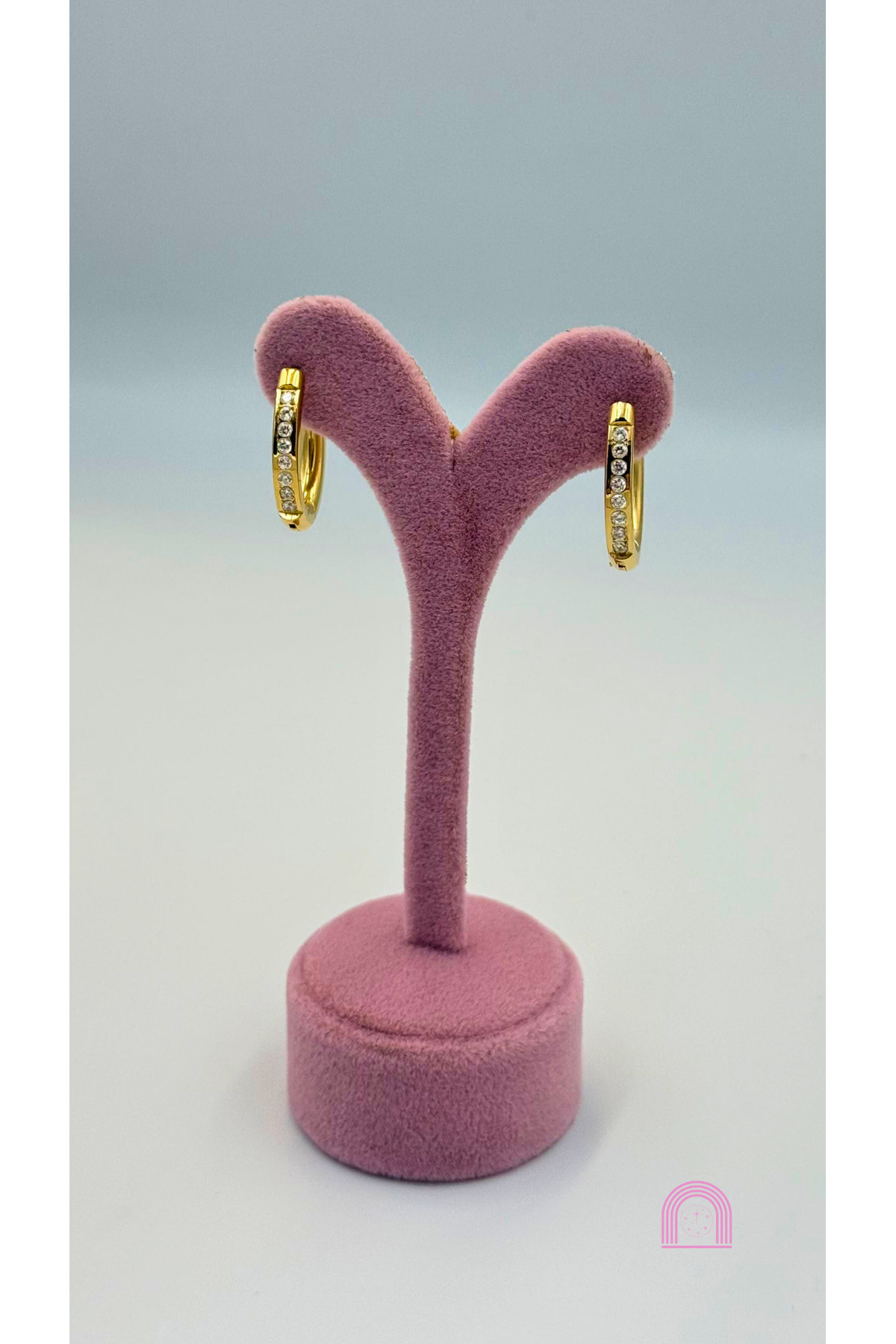 Çelik Taşlı Gold Halka Küpe Çelik Taşlı Gold Halka Küpe YUBNG تک سایز