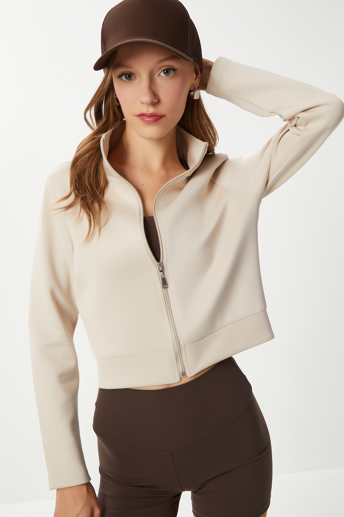 Fermuarlı Crop Scuba Örme Sweatshirt LPX0003 KREM Fermuarlı Crop Scuba Örme Sweatshirt LPX0003 KREM 40