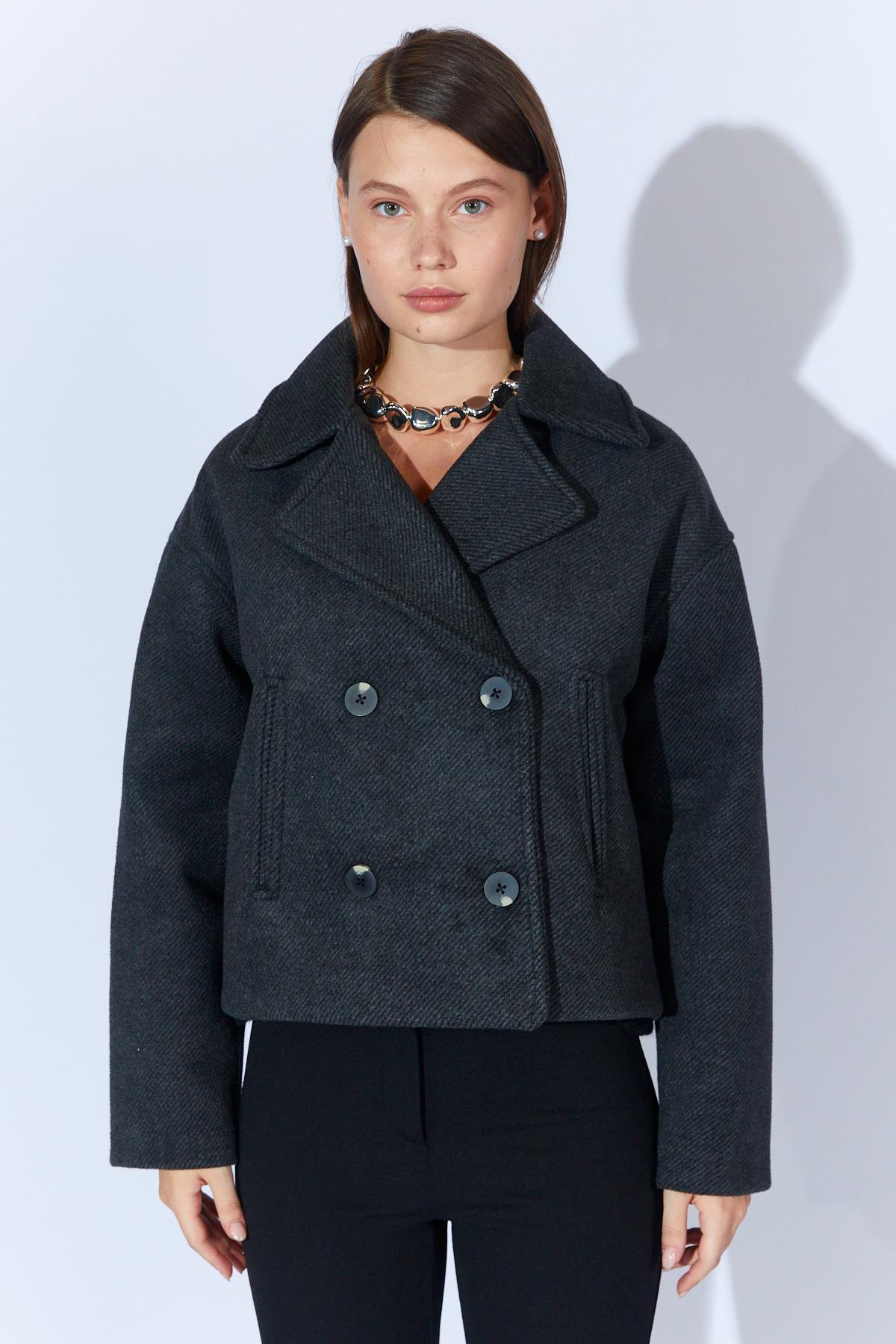 Kadın Antrasit Yakalı Dört Düğmeli Diagonel Kısa Kaşe Ceket Kadın Antrasit Yakalı Dört Düğmeli Diagonel Kısa Kaşe Ceket 5KKC35-5555 L