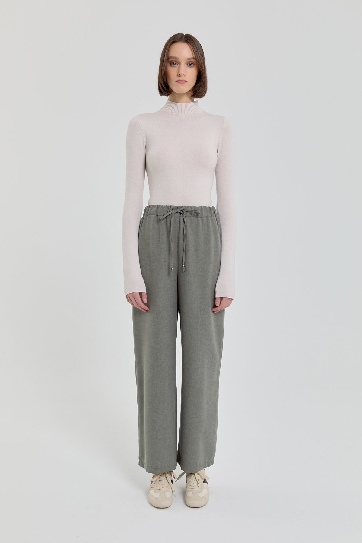 Beli Lastikli Bol Paça Pantolon Gri Beli Lastikli Bol Paça Pantolon Gri 252PA4012NH.1 42