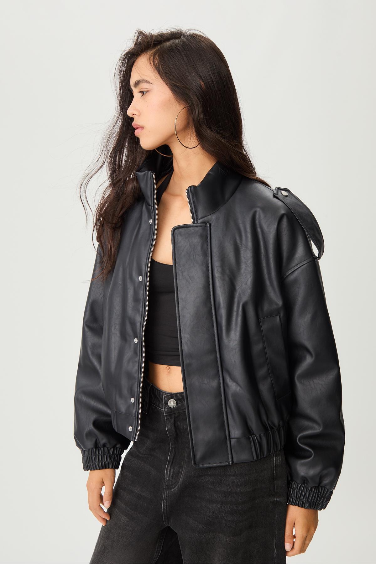 Suni deri vatkalı bomber ceket Suni deri vatkalı bomber ceket 08620633 XL