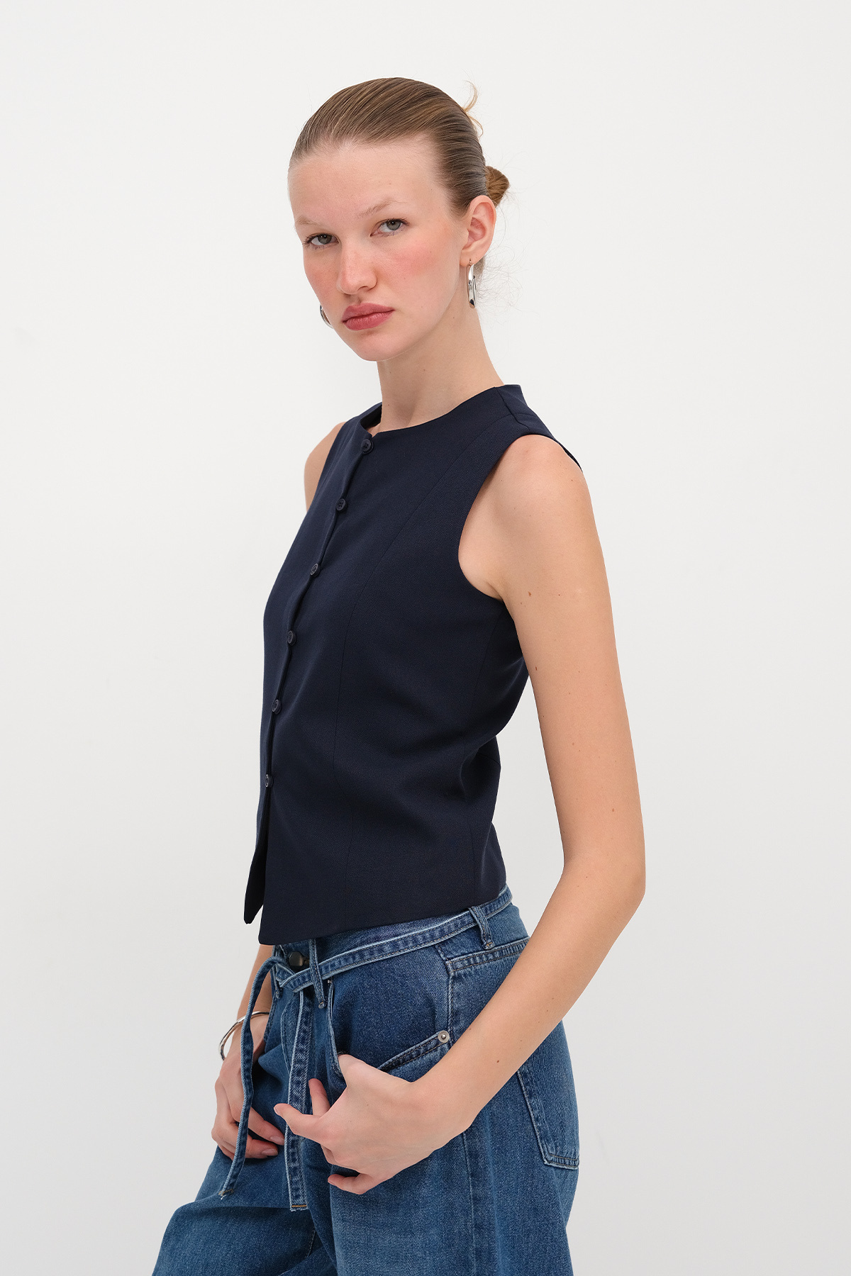 Bisiklet Yaka Düğmeli Yelek Y7586 Bisiklet Yaka Düğmeli Yelek Y7586 ADX-00035964 L