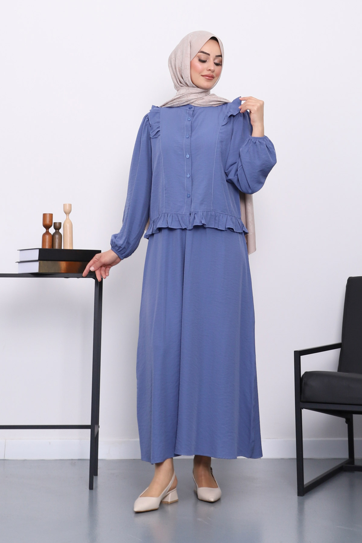 Lacivert Bel Bağlamalı Gömlek Etekli Takım Lacivert Bel Bağlamalı Gömlek Etekli Takım IMJ005867 42