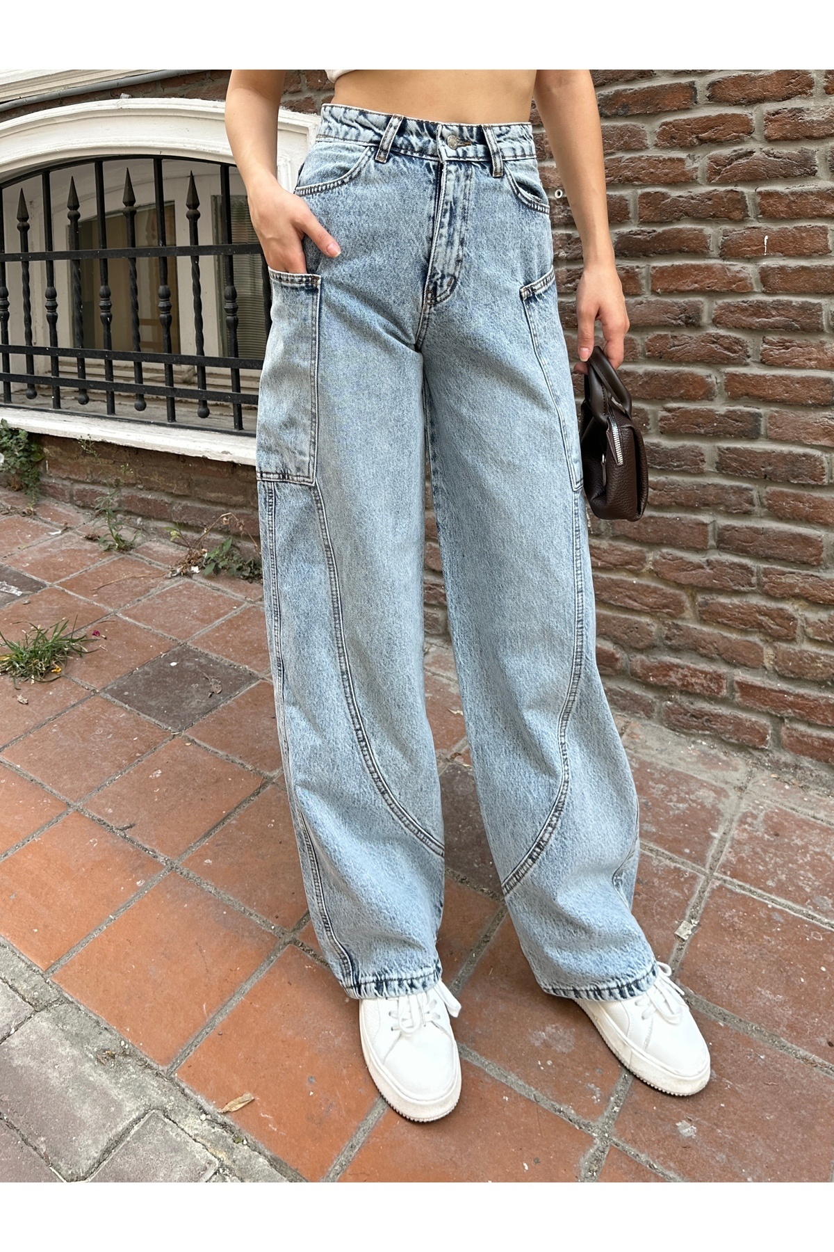 Y2k Yandan Cep Ön Yan Cep Detay Bol Paça Kar Kimyasallı Y2k Yandan Cep Ön Yan Cep Detay Bol Paça Kar Kimyasallı 2505 44