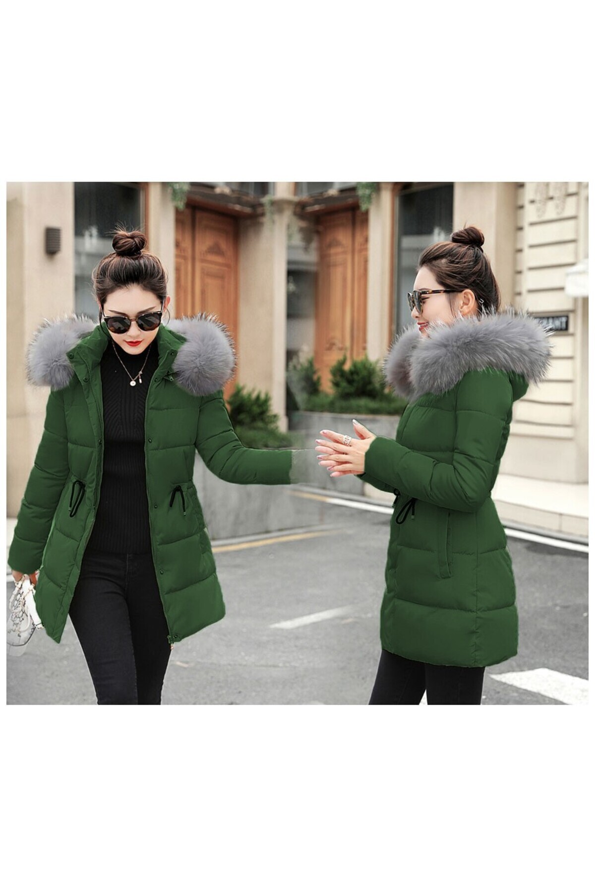 Kışlık Yaka Kürklü Orta Boy Kadın Şişme Mont Kışlık Yaka Kürklü Orta Boy Kadın Şişme Mont TDSbt122siyah14 2XL