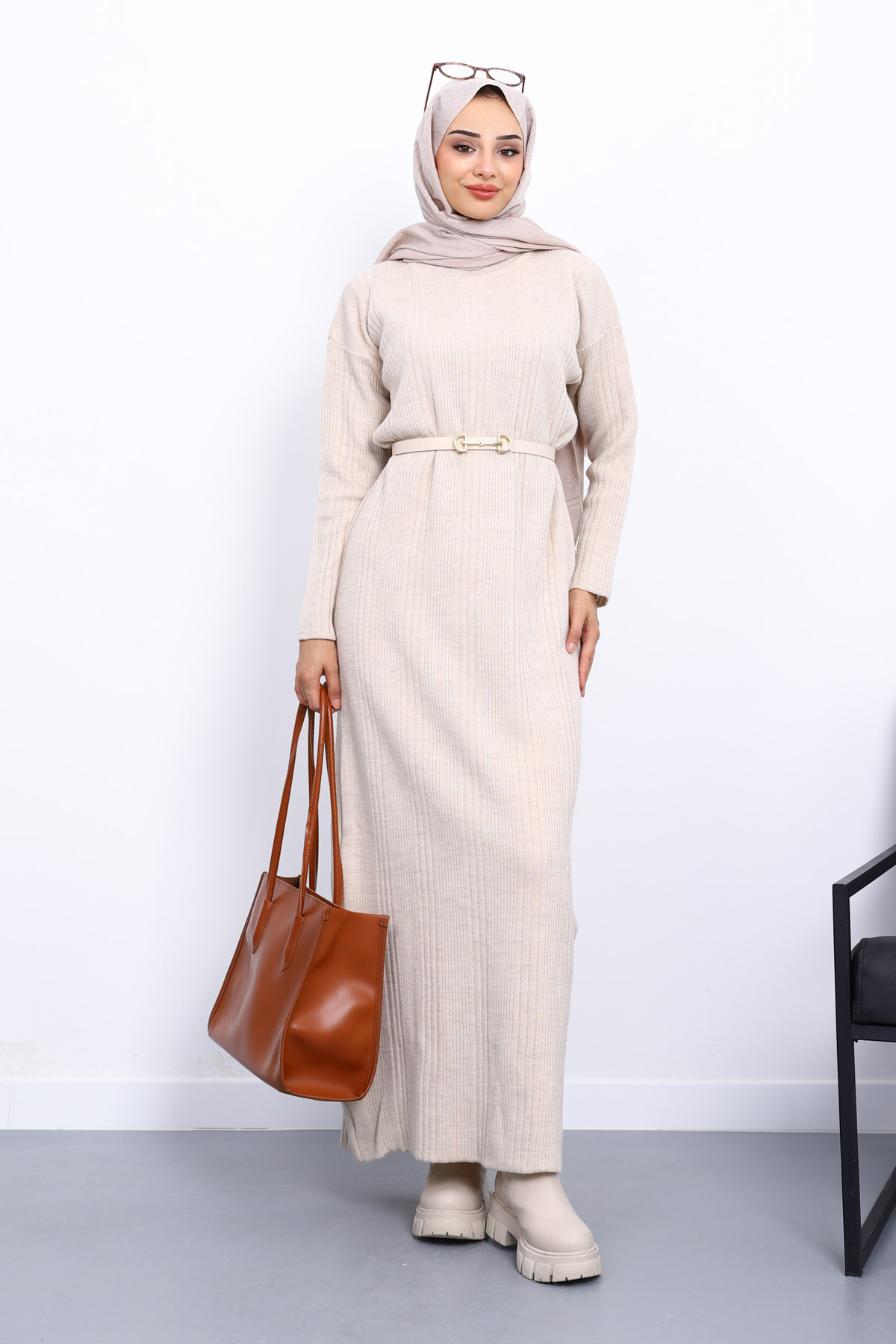 Lacivert Dik Yaka Fitilli Triko Elbise Lacivert Dik Yaka Fitilli Triko Elbise IMJ007394 تک سایز