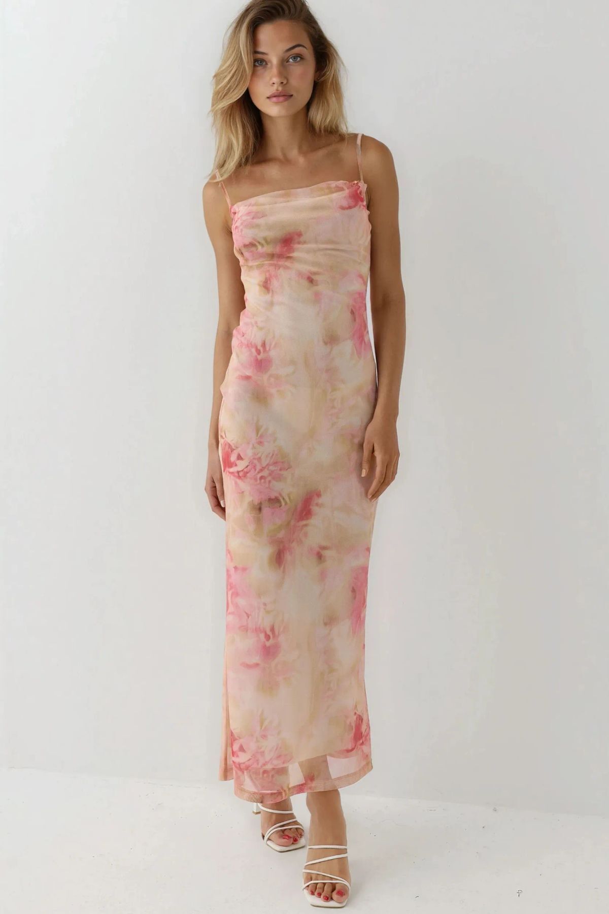 Degaje Yaka Desenli Maxi Tül Elbise Degaje Yaka Desenli Maxi Tül Elbise M4MKX2LJ XXS