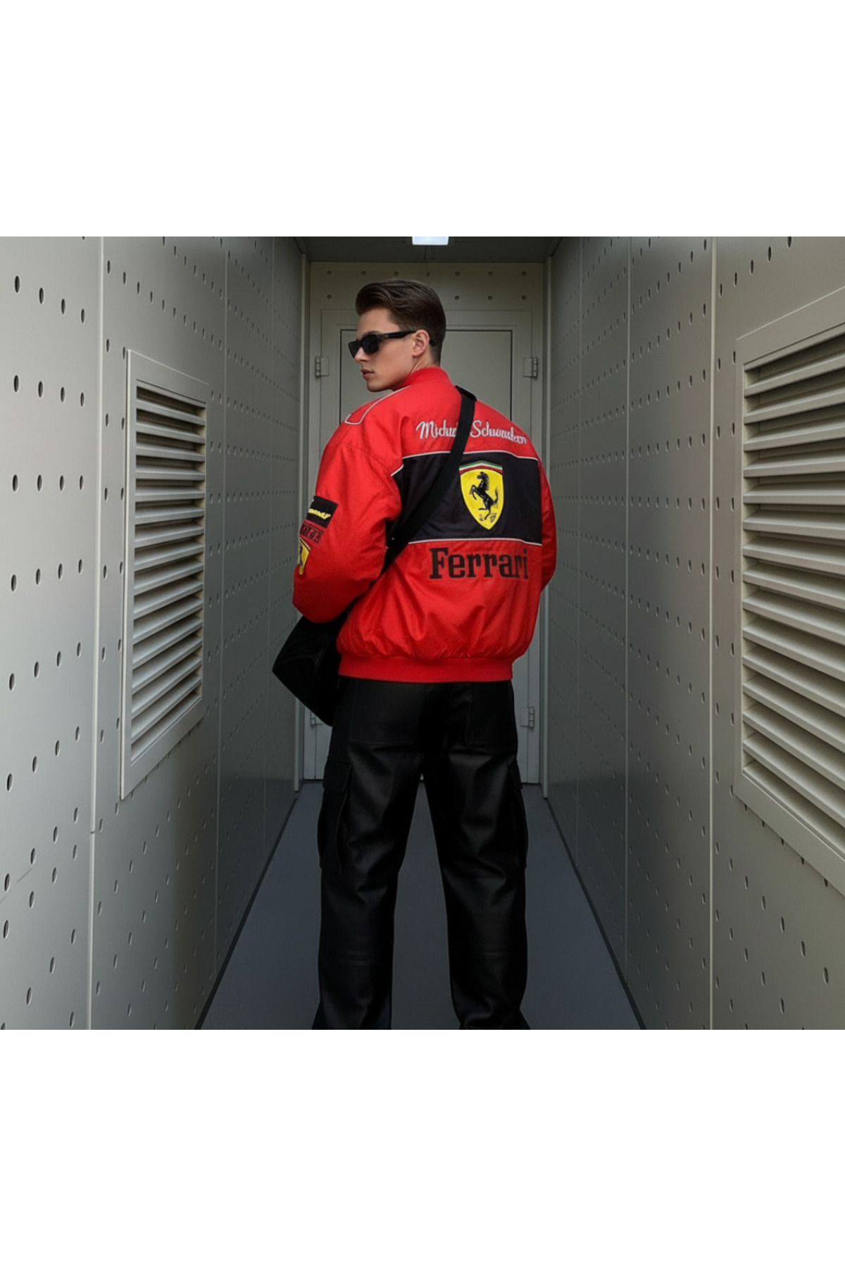 Kırmızı Paraşüt Erkek Racing Retro Unisex Bomber Ceket -THE SOLO Kırmızı Paraşüt Erkek Racing Retro Unisex Bomber Ceket -THE SOLO THESOLO-CKT-003 XL