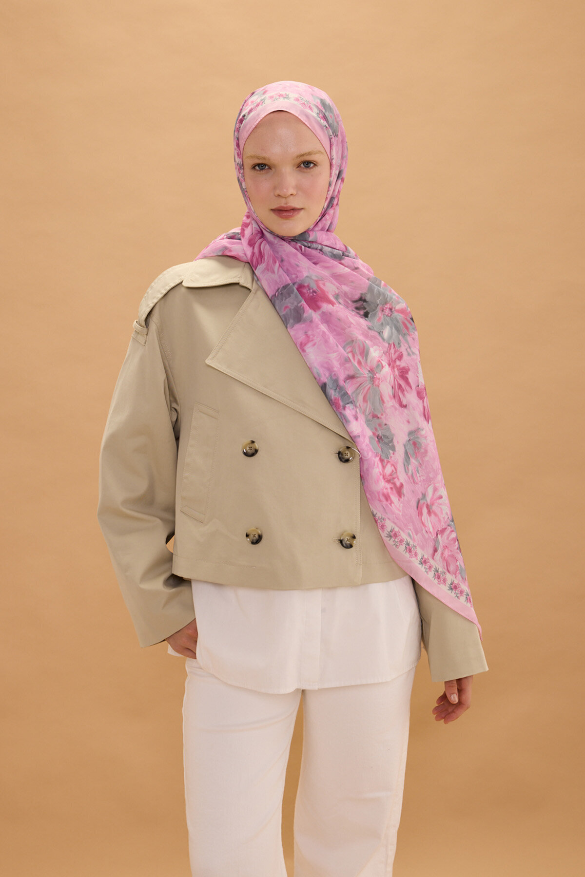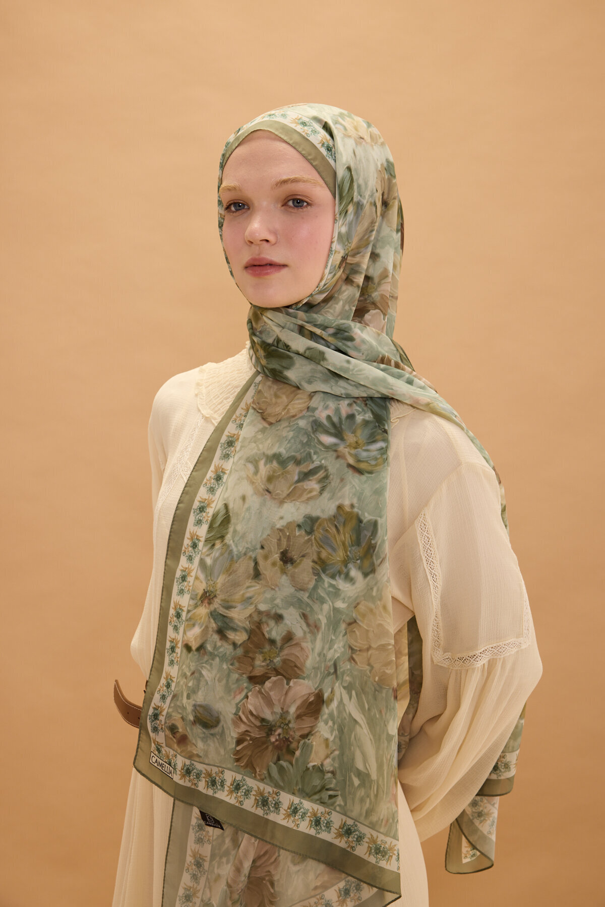 Floransa İpek Krep Şal - Olive Floransa İpek Krep Şal - Olive 18 تک سایز