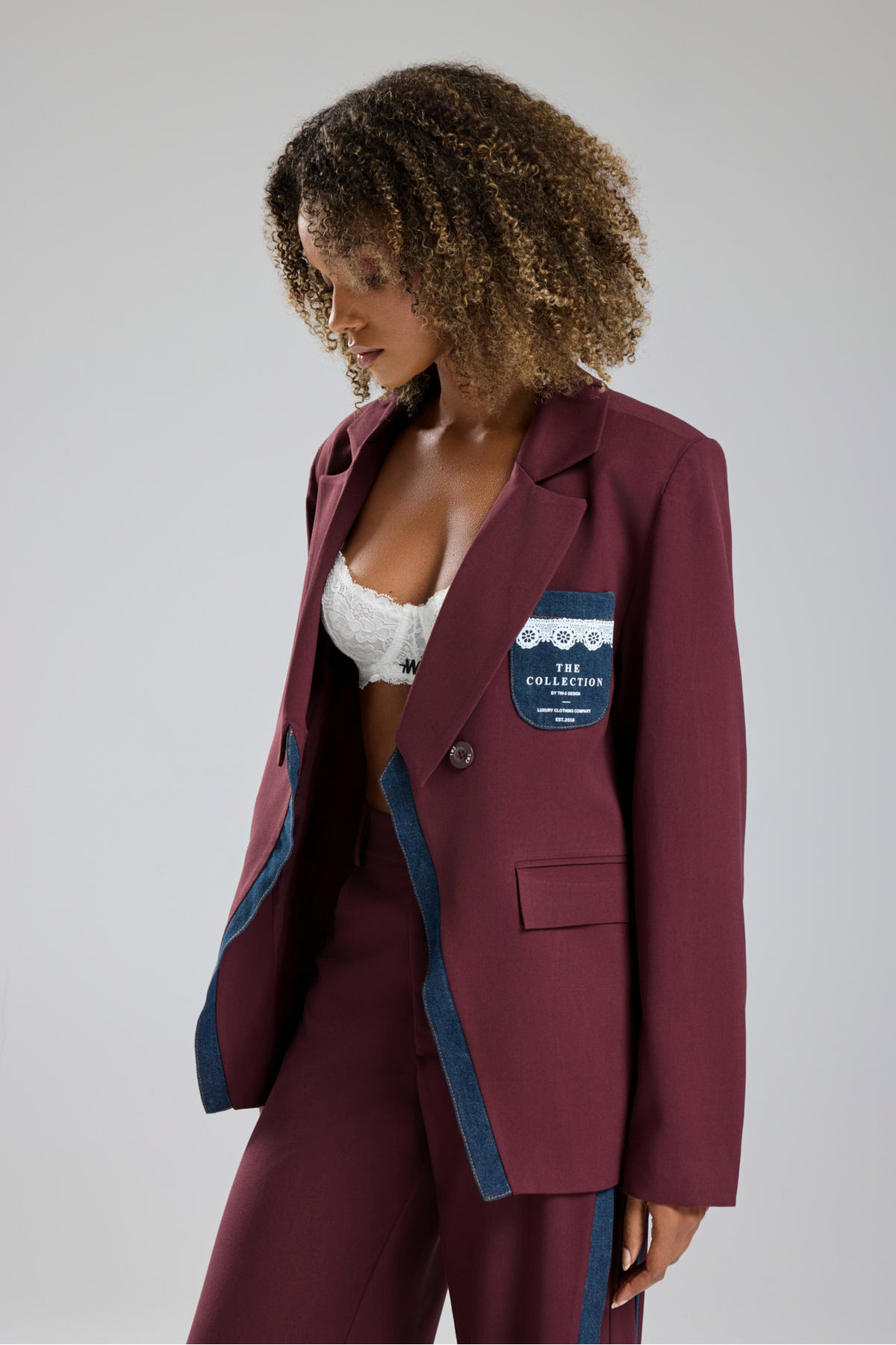 Kadın Denim Garnili Dantel Baskı Detaylı Blazer Ceket Kadın Denim Garnili Dantel Baskı Detaylı Blazer Ceket TW3-1702 L