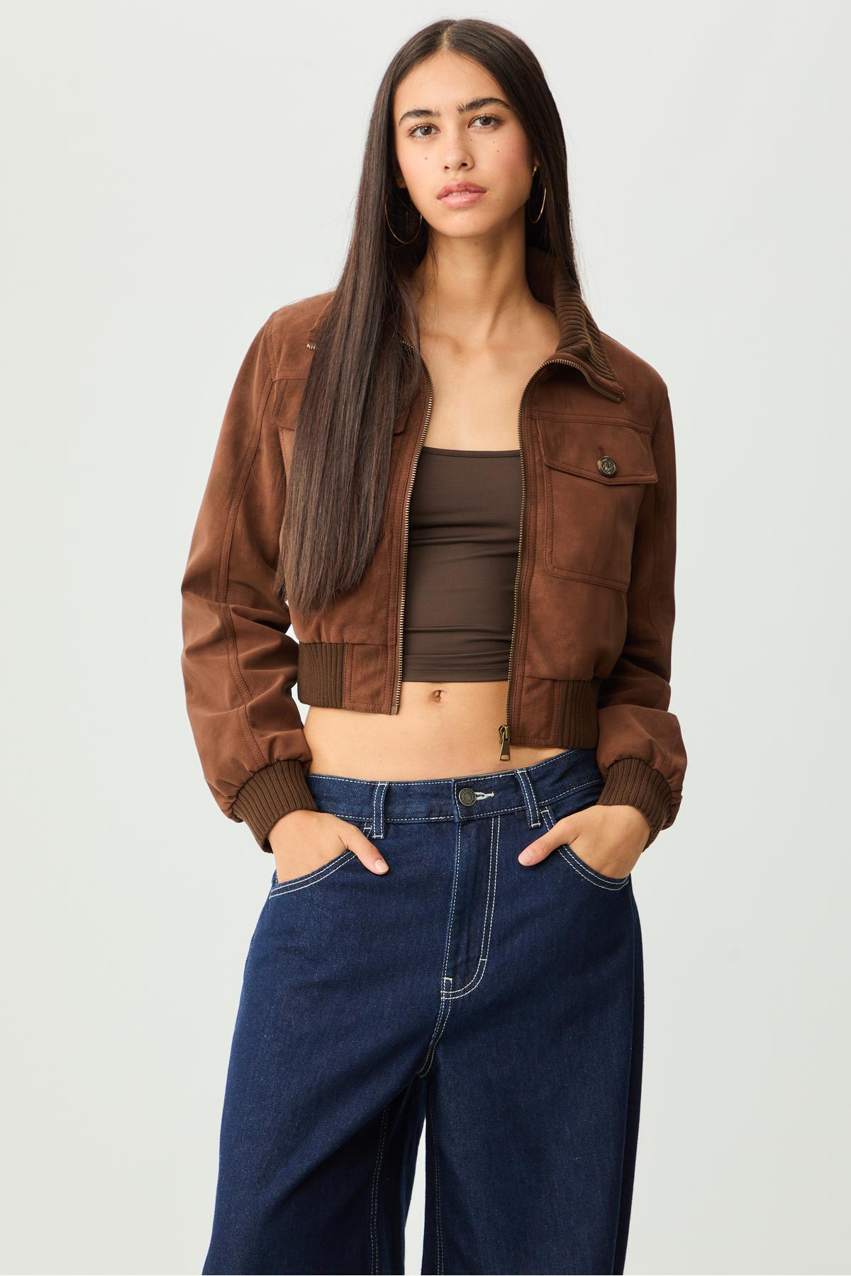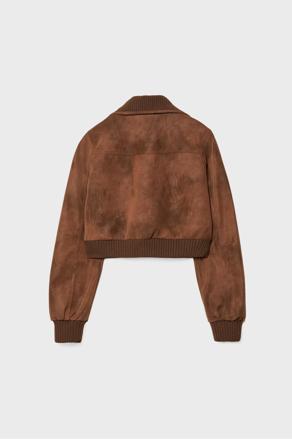 Kısa suni deri cepli ceket Kısa suni deri cepli ceket 08453782 XL