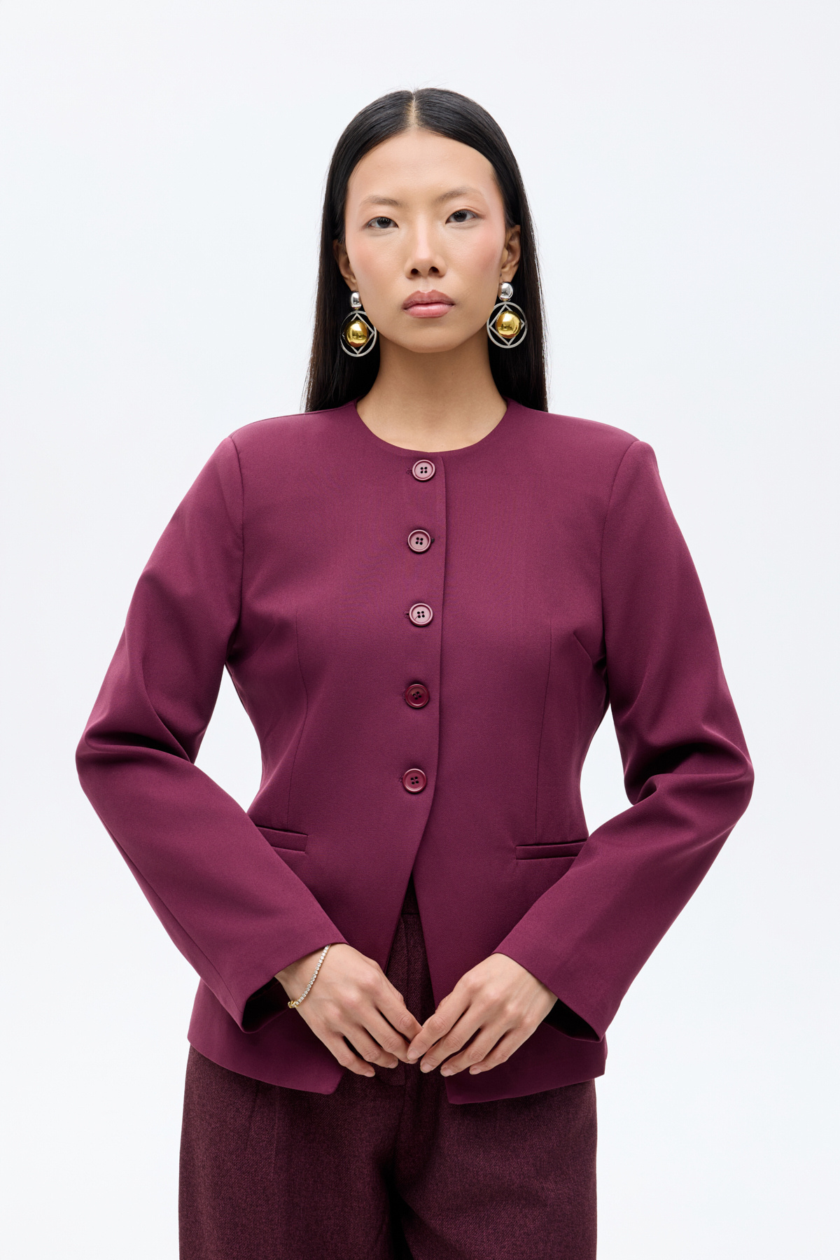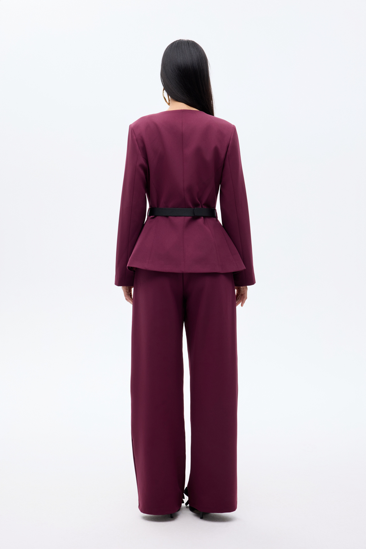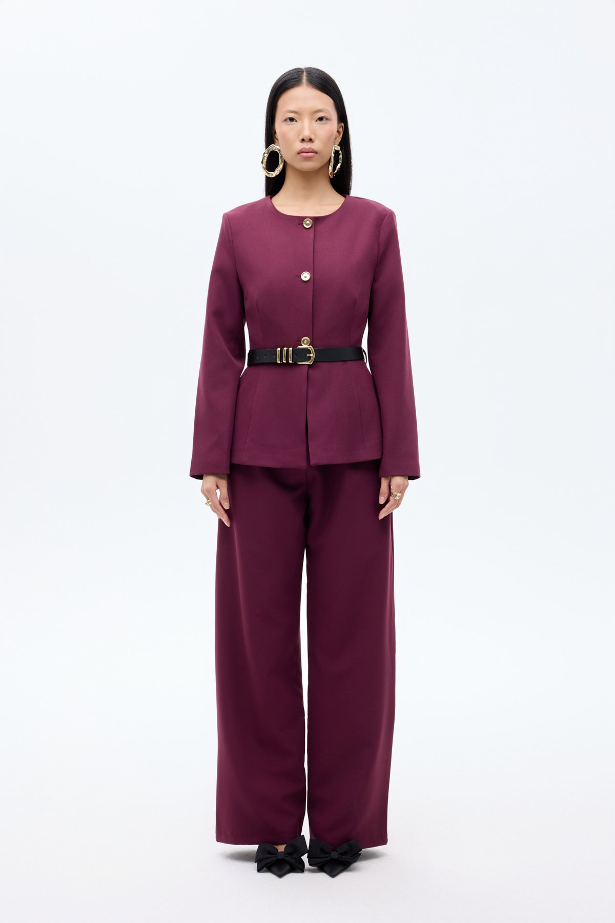 Kemer Aksesuarlı Yuvarlak Yaka Ceket Mürdüm Kemer Aksesuarlı Yuvarlak Yaka Ceket Mürdüm 26KCKT00922 L