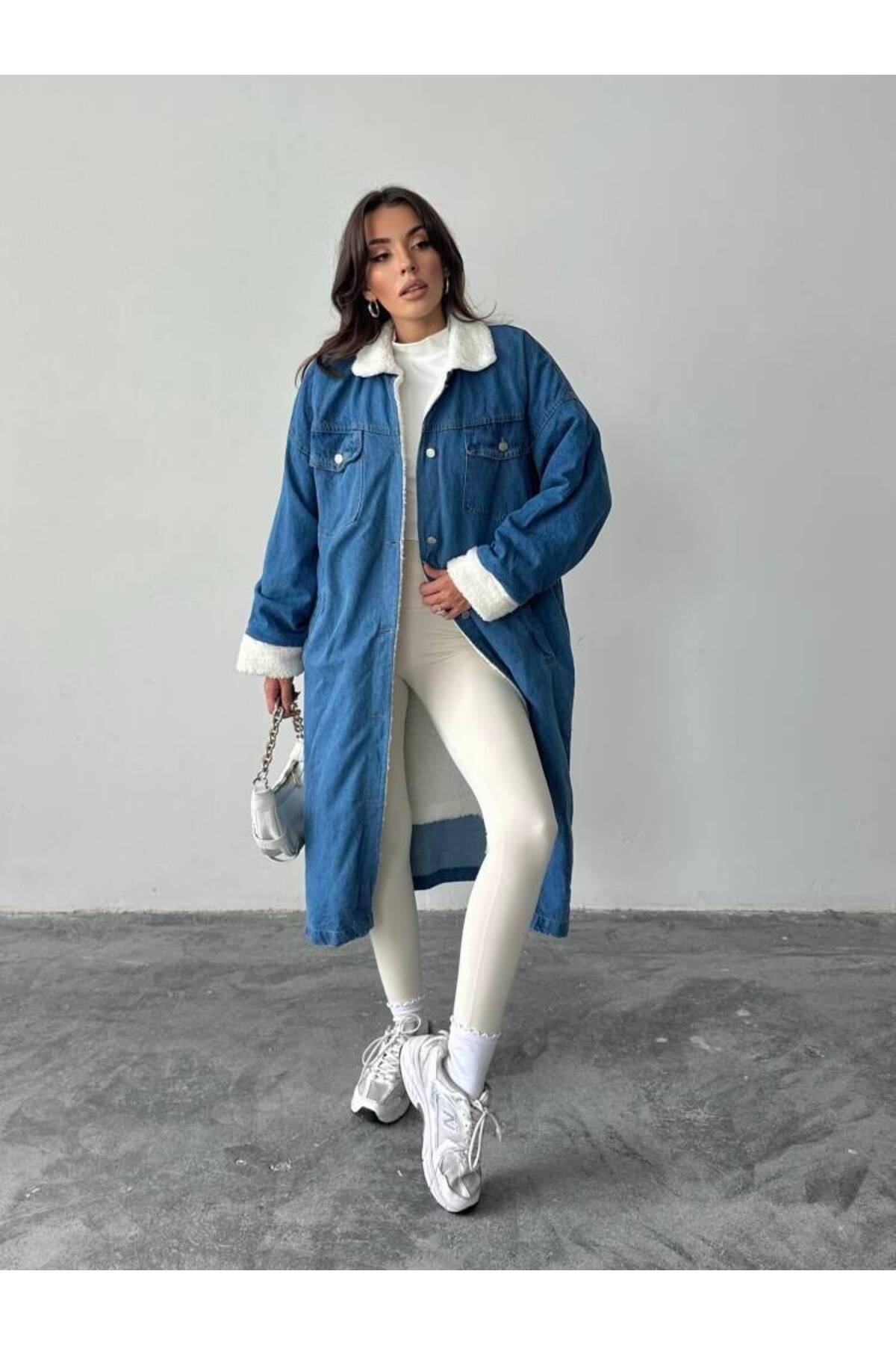 Kaşe Kaban Kemer Detaylı Aksesuarlı Kaşe Kaban Kemer Detaylı Aksesuarlı TDStds14laci1 2XL