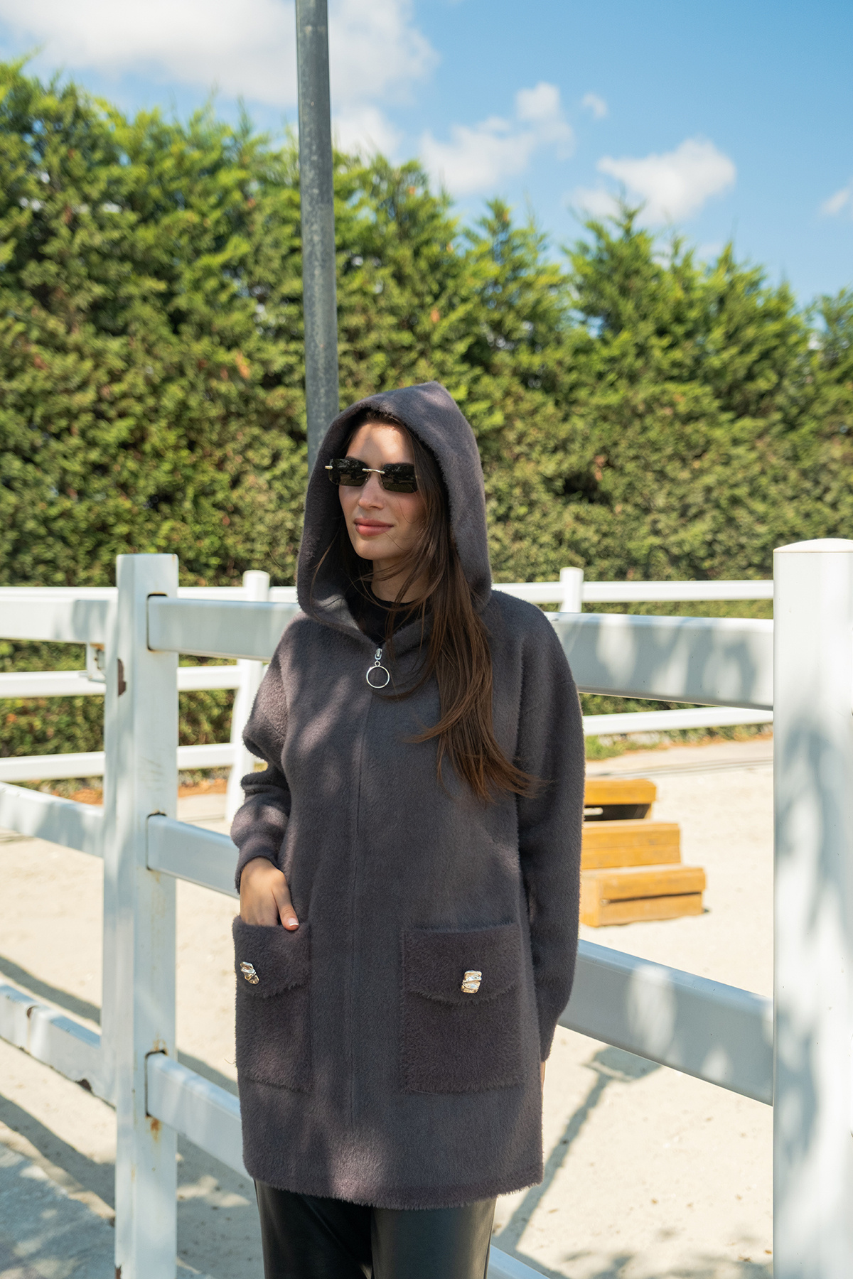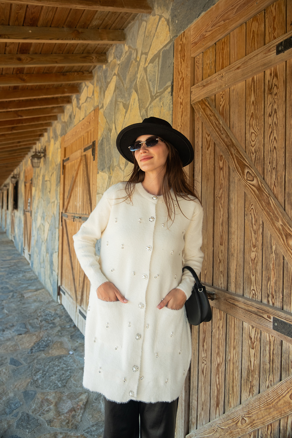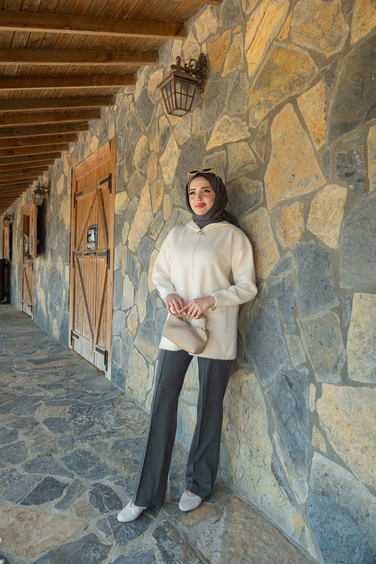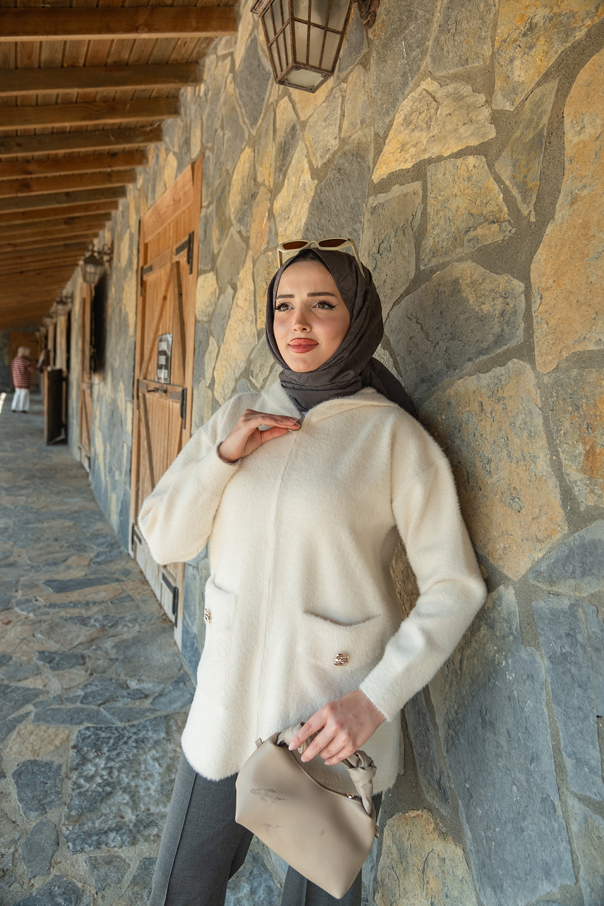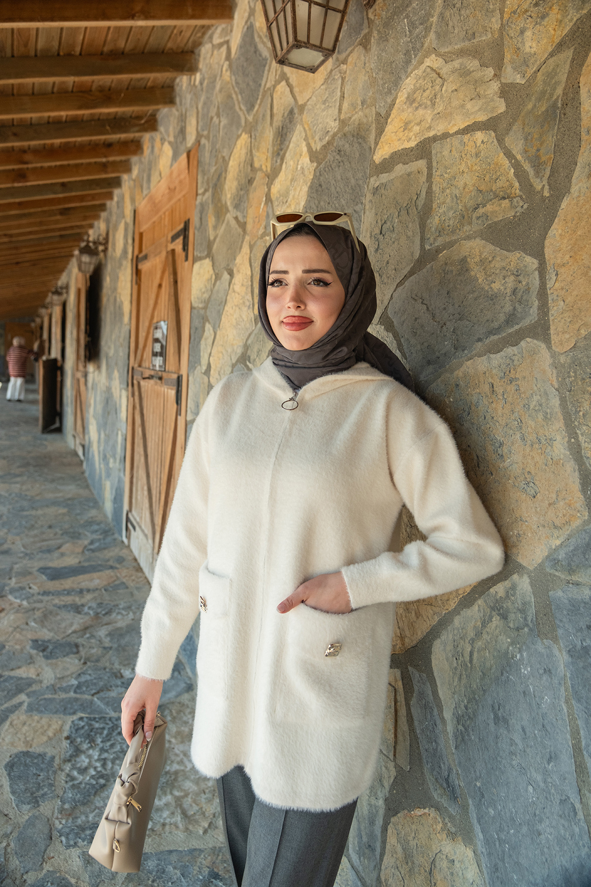 Kadın Fermuarlı Triko Ceket Bej Kadın Fermuarlı Triko Ceket Bej 163-441 Standart