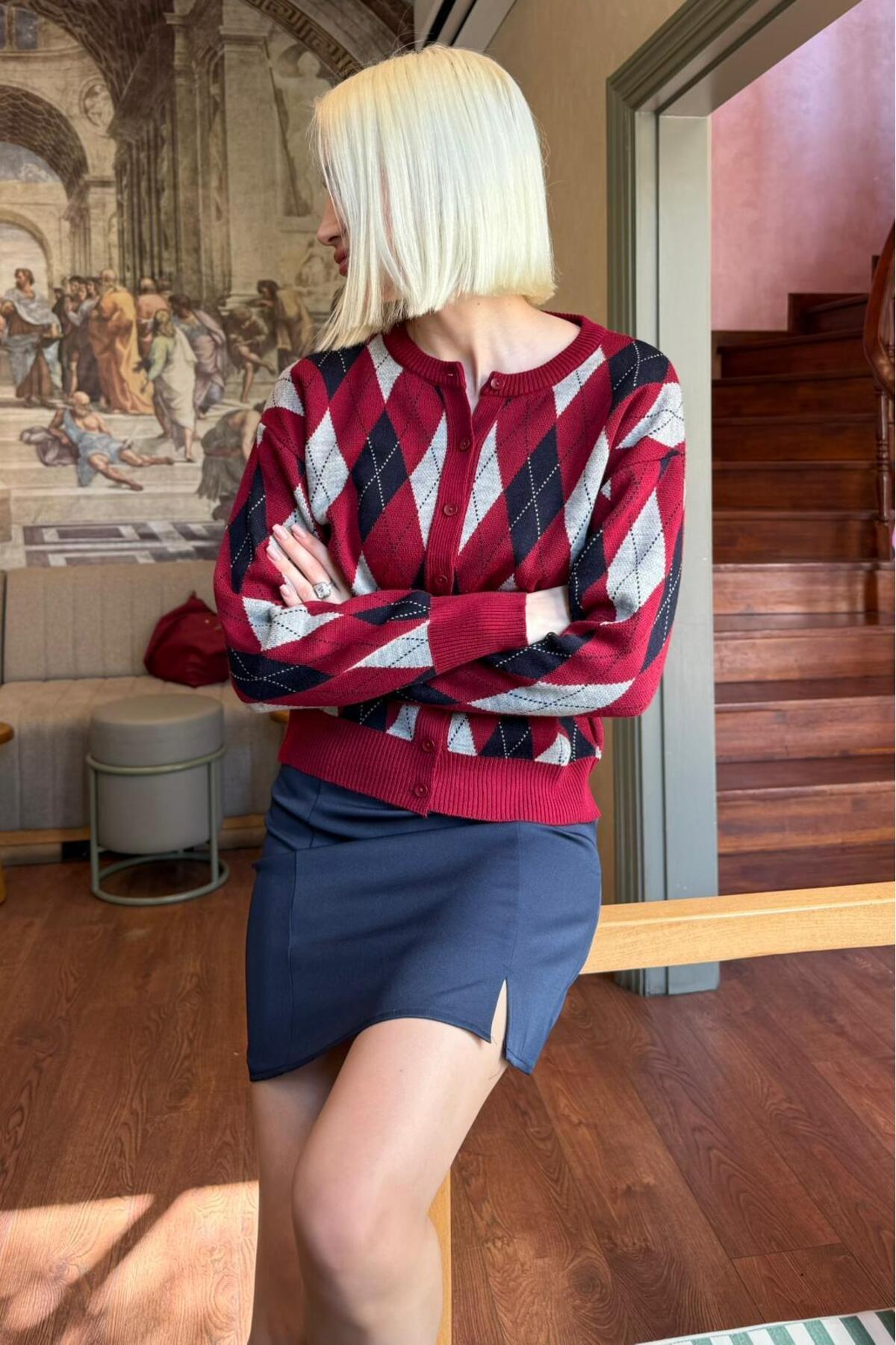 Bordo Baklava Desenli Bisiklet Yaka Kadın Hırka Mg2496 Bordo Baklava Desenli Bisiklet Yaka Kadın Hırka Mg2496 MG2496 L