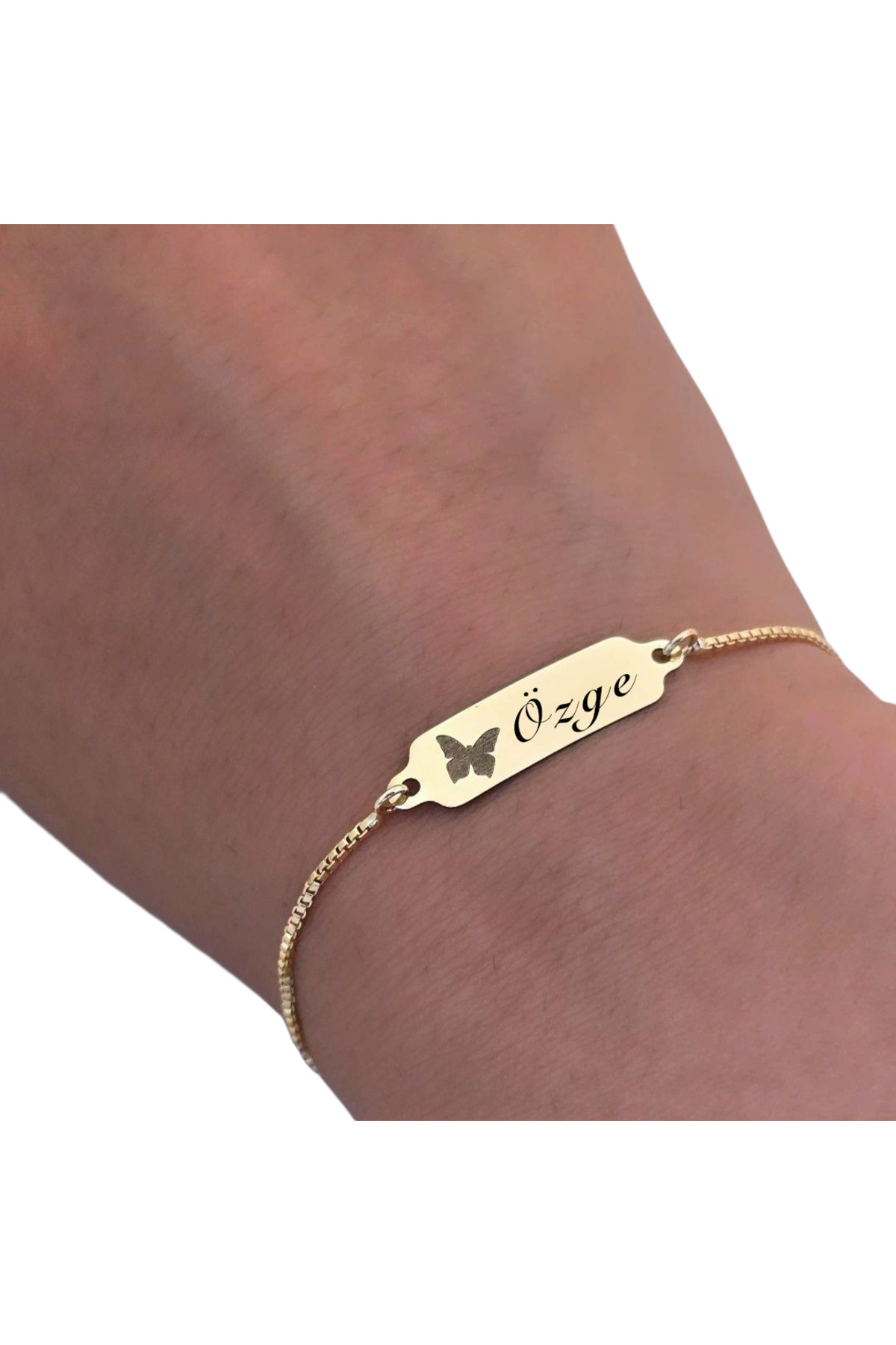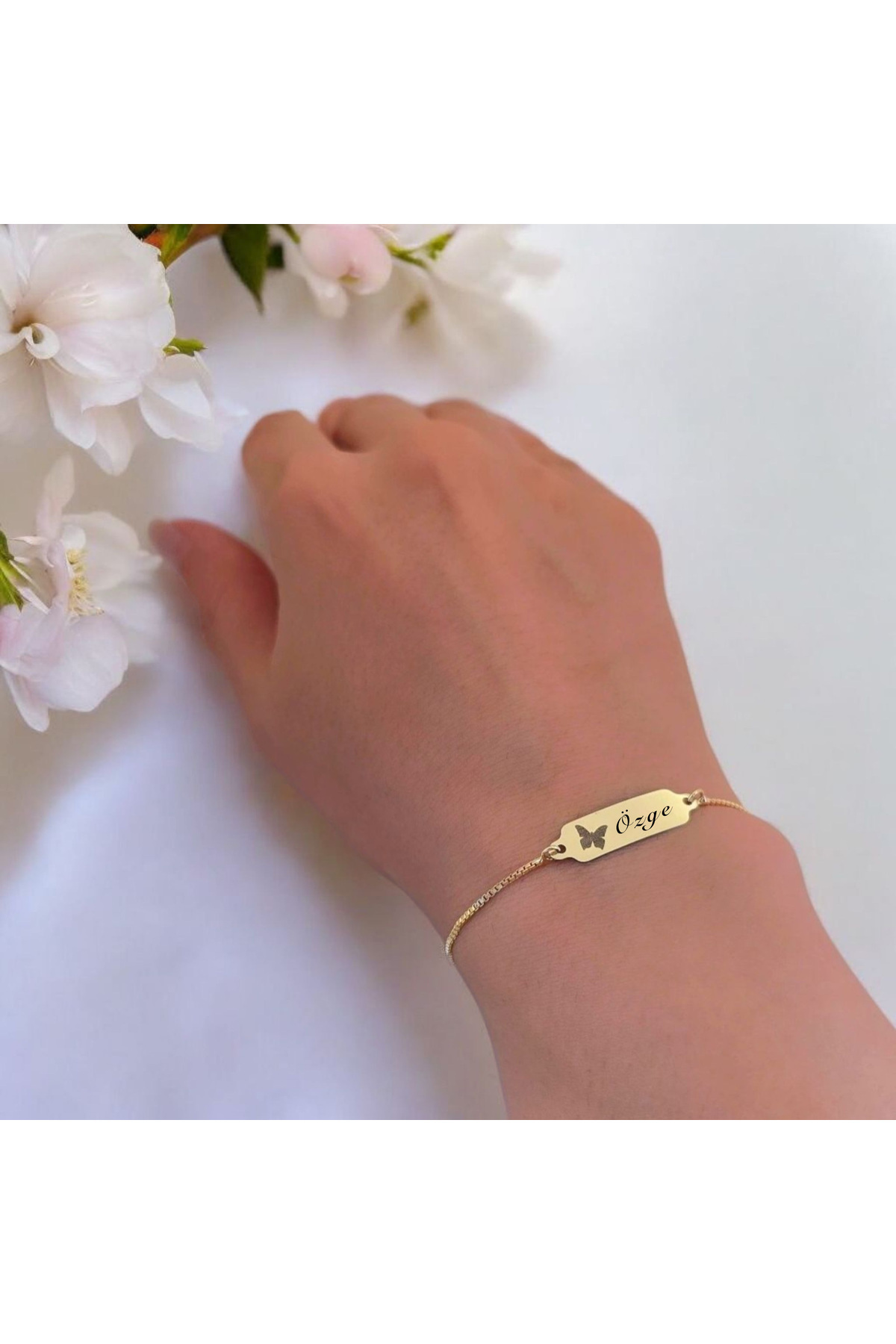 Altın Plakalı 14 Ayar Özge İsmine Özel Zincirli Kelebek Motifli Hediye Bileklik-643isim Altın Plakalı 14 Ayar Özge İsmine Özel Zincirli Kelebek Motifli Hediye Bileklik-643isim 643-kzn-fsnfg-MO1 24 cm