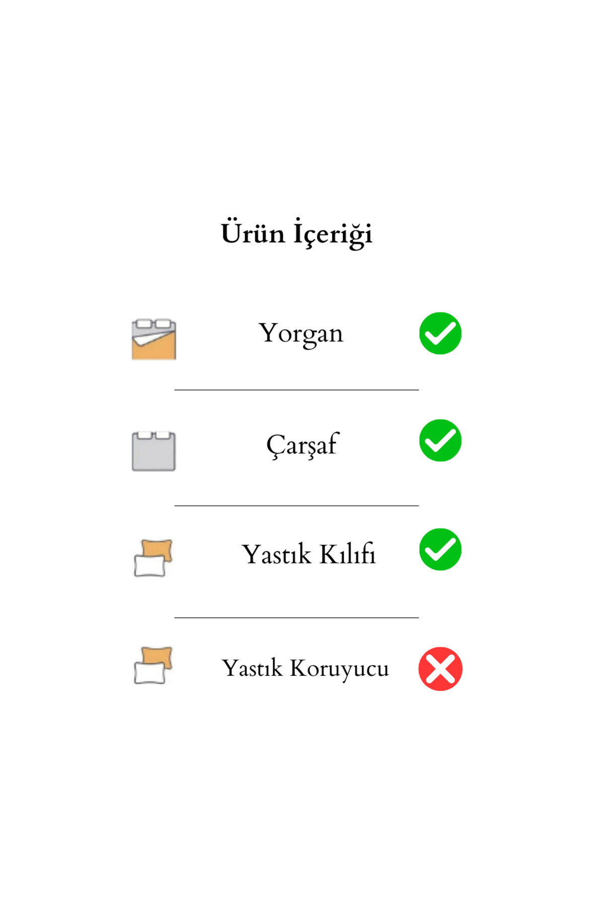 - تنظیم محتوا : Yorgan + Çarşaf + Yastık Kılıfı