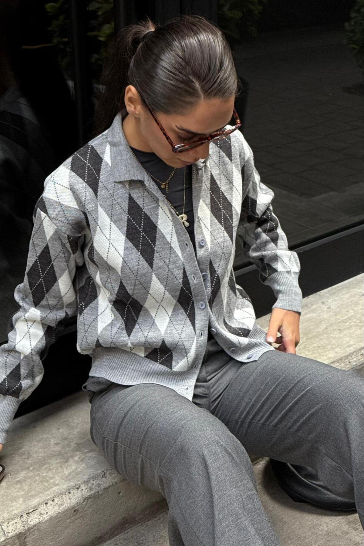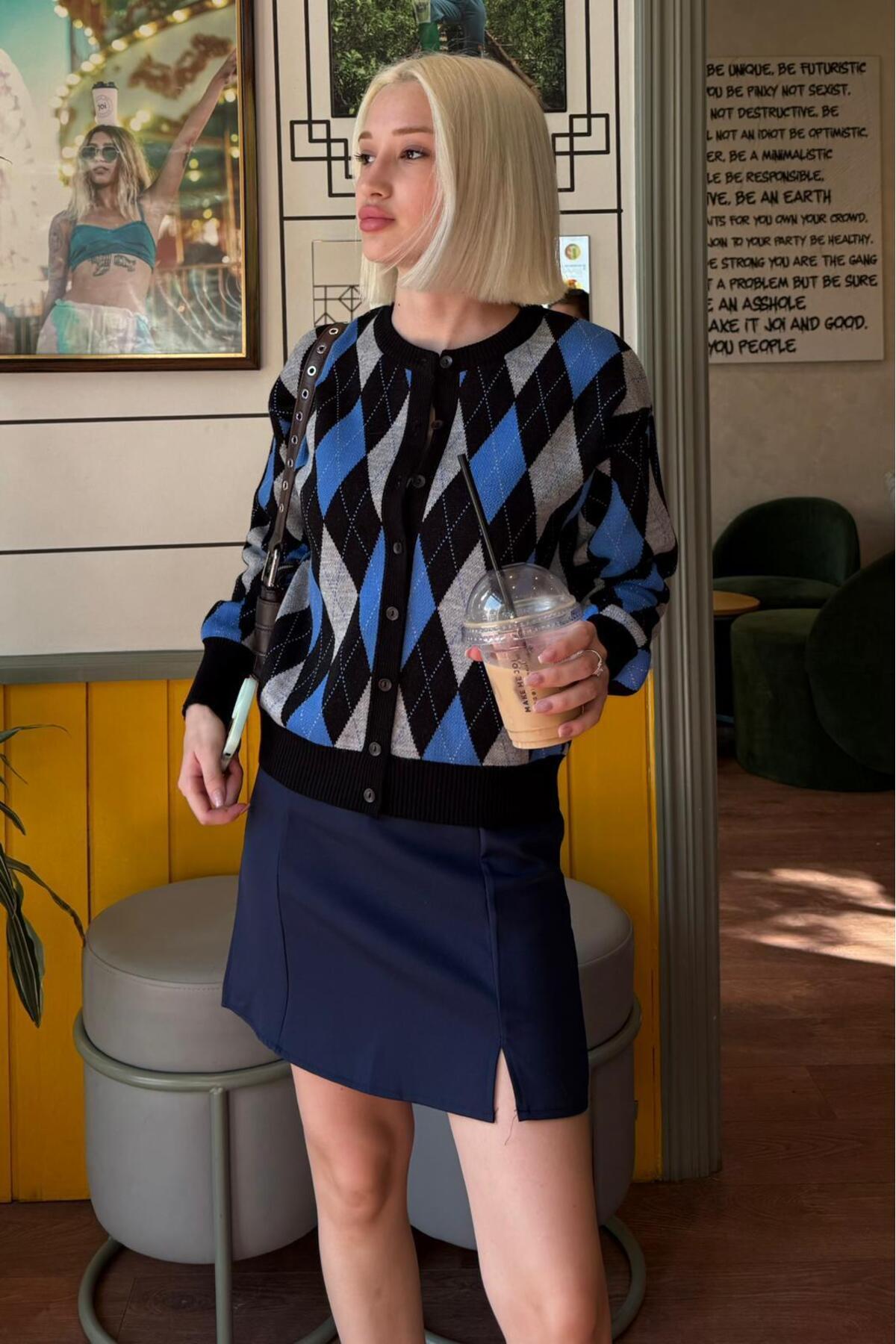 Siyah Baklava Desenli Bisiklet Yaka Kadın Hırka Mg2496 Siyah Baklava Desenli Bisiklet Yaka Kadın Hırka Mg2496 MG2496 L