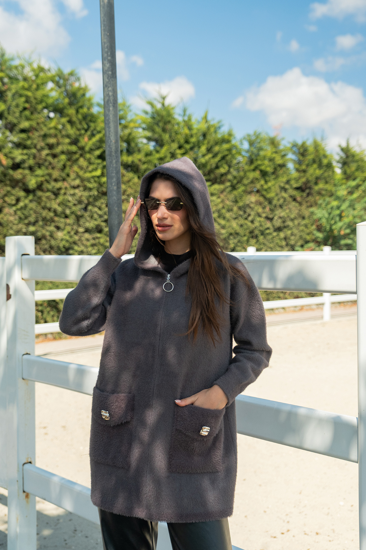 Fermuarlı Triko Ceket Füme Fermuarlı Triko Ceket Füme 163-441 Standart