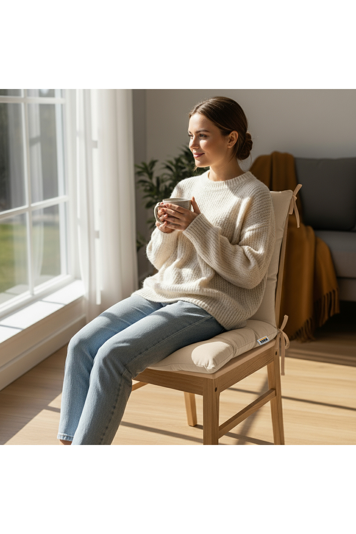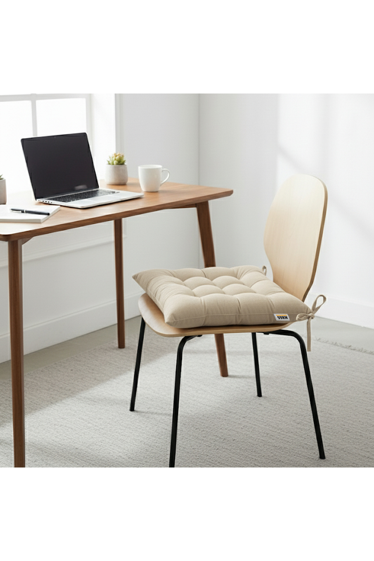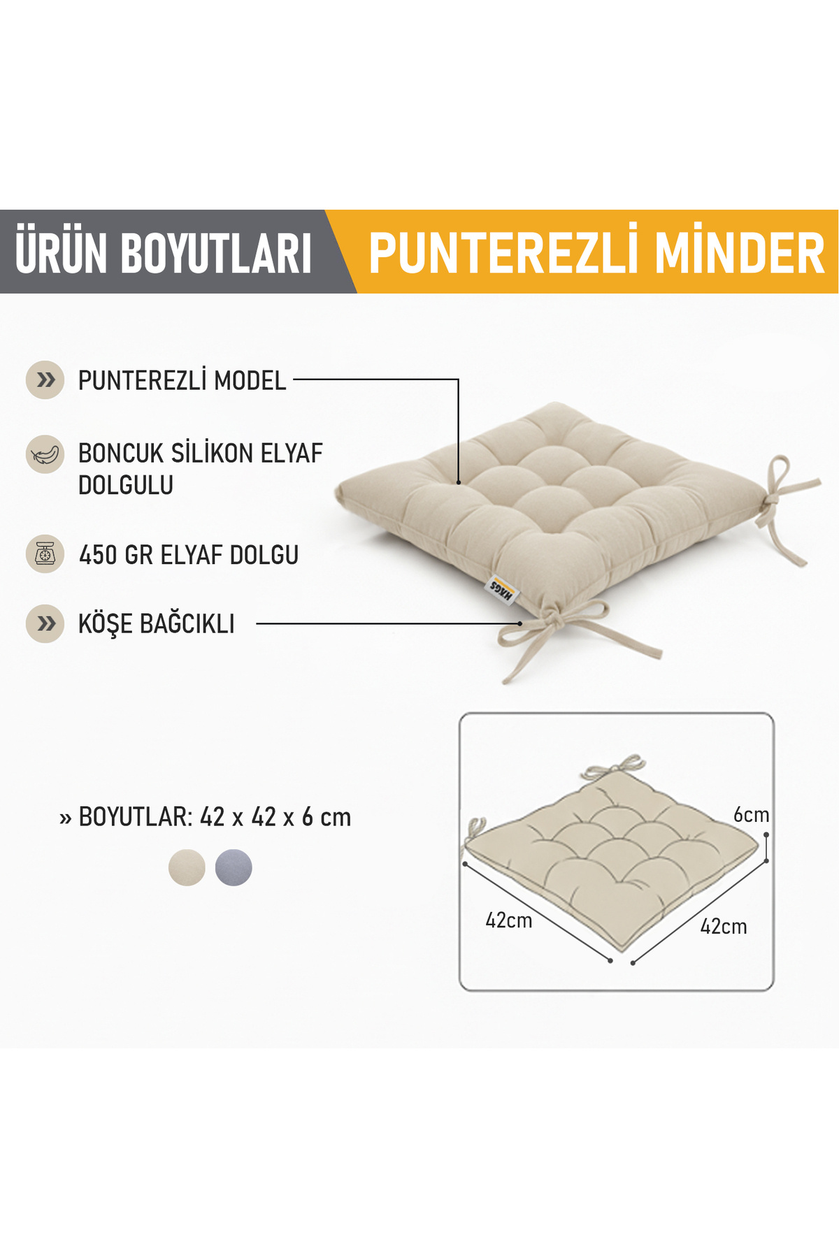 Sandalye Minderi, Punterez Puntolu Silikon Elyaf Dolgulu, Bağcıklı Puf Minder 42x42x6 cm - Bej Sandalye Minderi, Punterez Puntolu Silikon Elyaf Dolgulu, Bağcıklı Puf Minder 42x42x6 cm - Bej 83CC-PNTRZ تک سایز