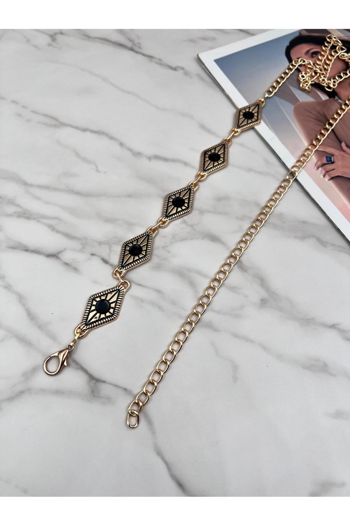 Gold/Siyah Mineli Kadın Kemeri,Ceket Kemeri,Bel Kemeri,Zincirli Kemer. Gold/Siyah Mineli Kadın Kemeri,Ceket Kemeri,Bel Kemeri,Zincirli Kemer. EMR41 110 CM