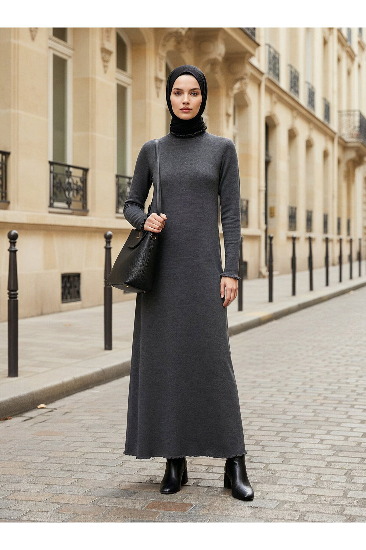 Bisiklet Yaka Kalın Fitilli Uzun Triko Elbise GRİ 9363-E Bisiklet Yaka Kalın Fitilli Uzun Triko Elbise GRİ 9363-E Standart
