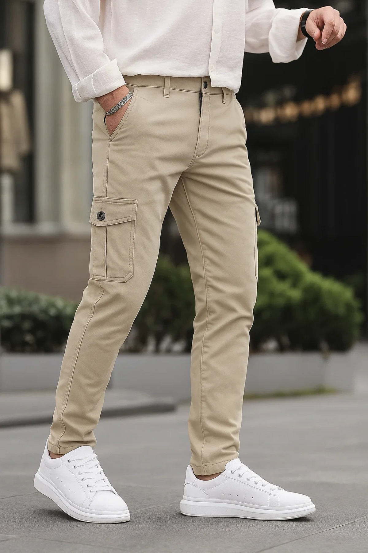 Erkek Bol Paça Esnek Krem Kargo Cepli Pantolon Erkek Bol Paça Esnek Krem Kargo Cepli Pantolon Ayna-20YEGPNT0031 2XL