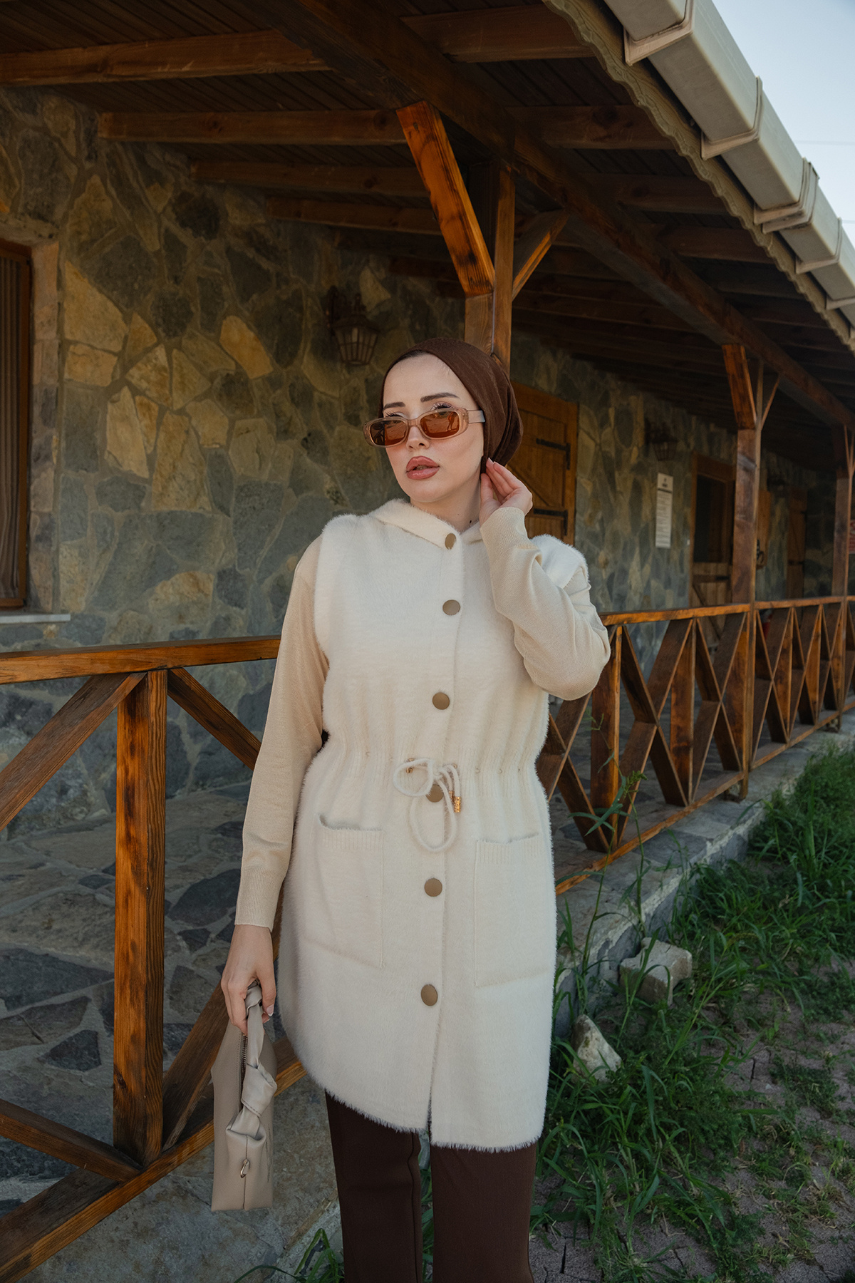 Kadın Bel Bağlamalı Triko Yelek Bej Kadın Bel Bağlamalı Triko Yelek Bej 163-438 Standart