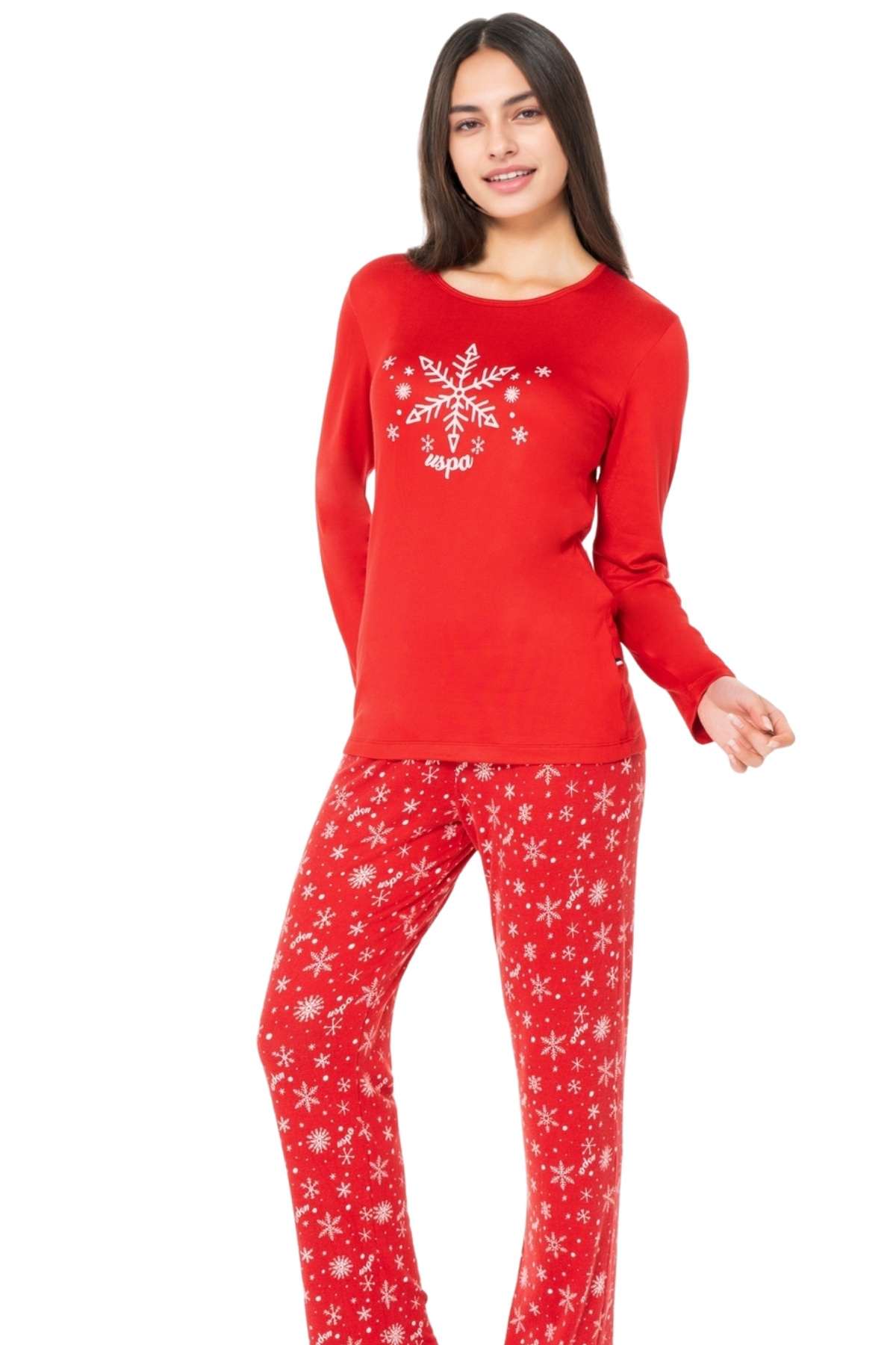 Kadın %100 Pamuk Uzun Kollu Pijama Takımı – Kırmızı Kar Desenli Kadın %100 Pamuk Uzun Kollu Pijama Takımı – Kırmızı Kar Desenli SO.20.WE.15.TO1 2XL