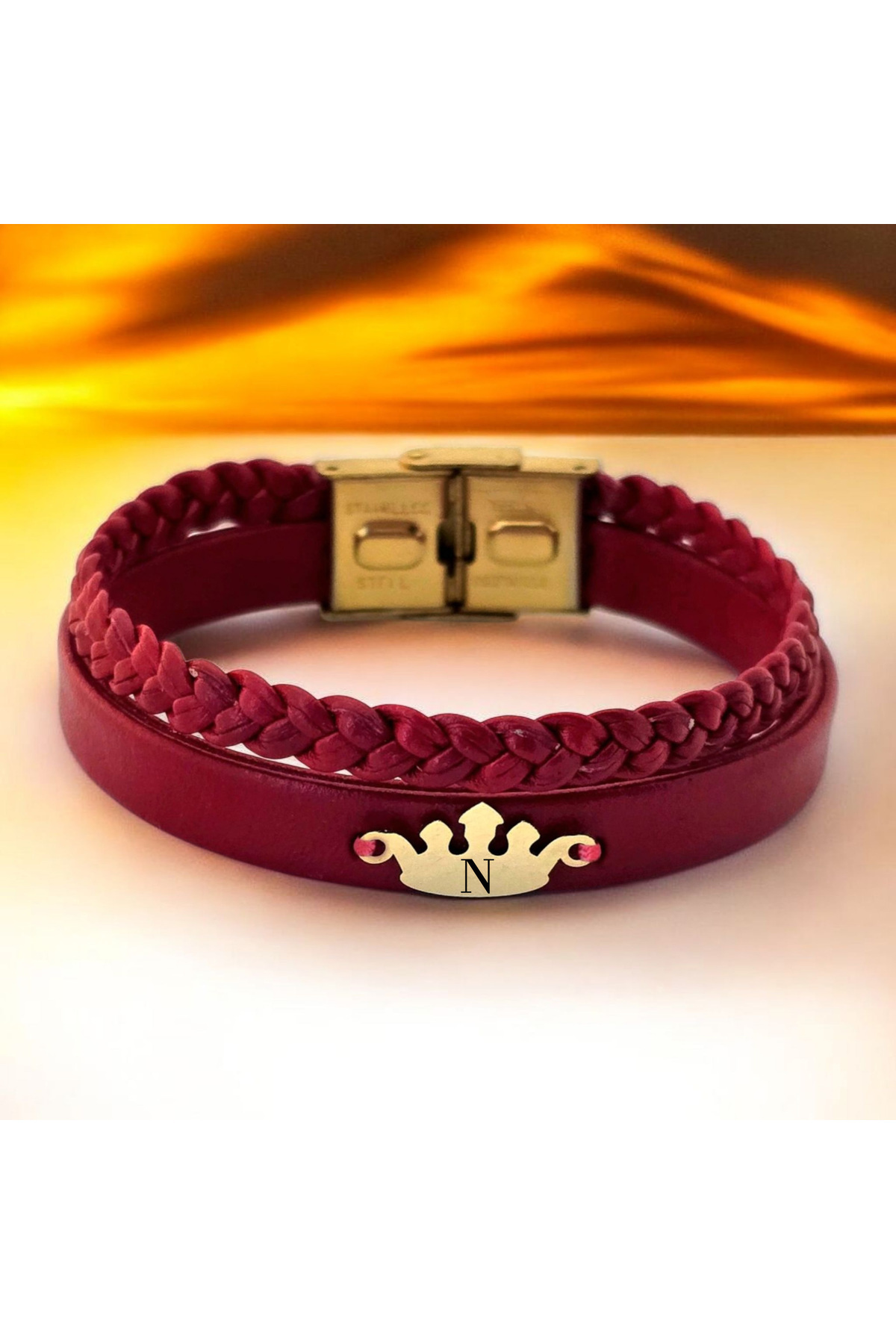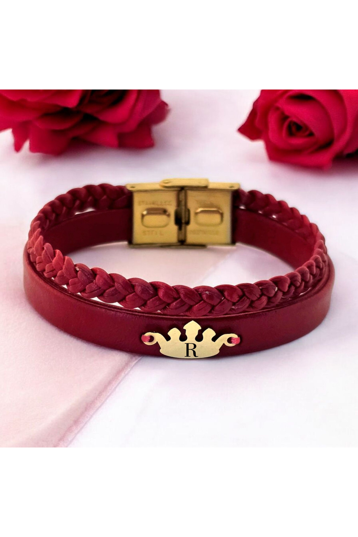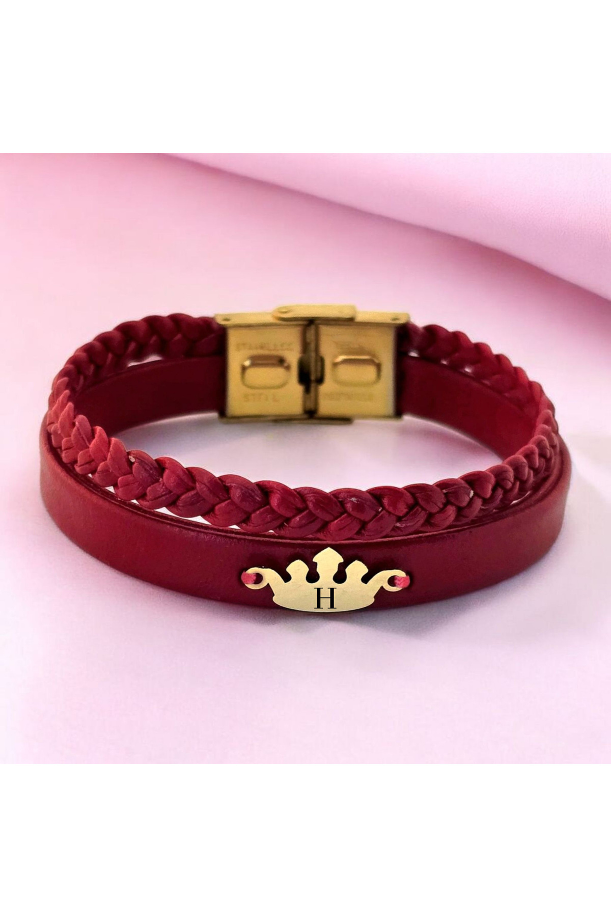 14 Ayar Plakalı Altın B Harfine Özel Taç Motifli Doğal Bordo Derili Hediye Bileklik-648harf 14 Ayar Plakalı Altın B Harfine Özel Taç Motifli Doğal Bordo Derili Hediye Bileklik-648harf 648-krmtdr-fbfg-MO2 22 cm