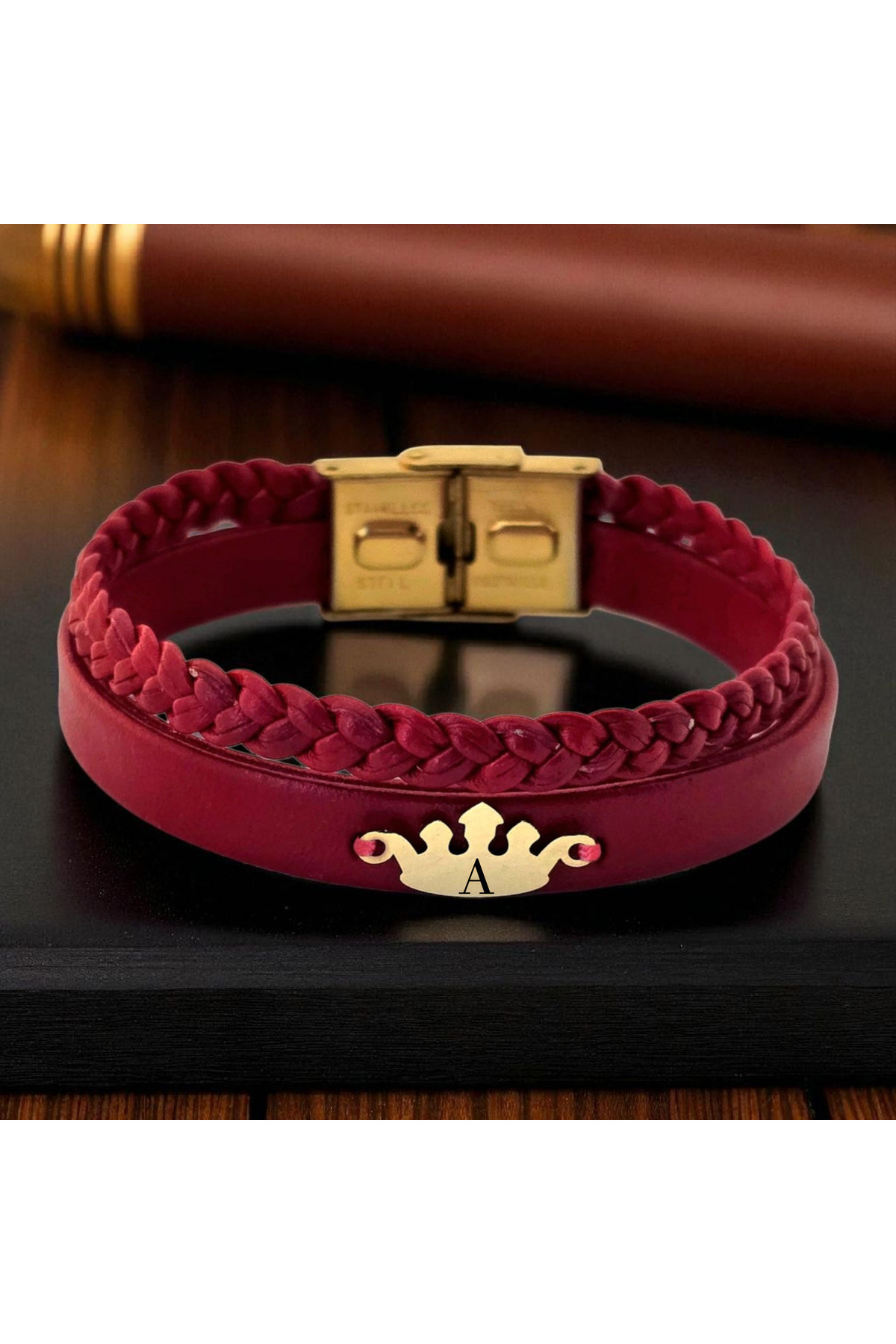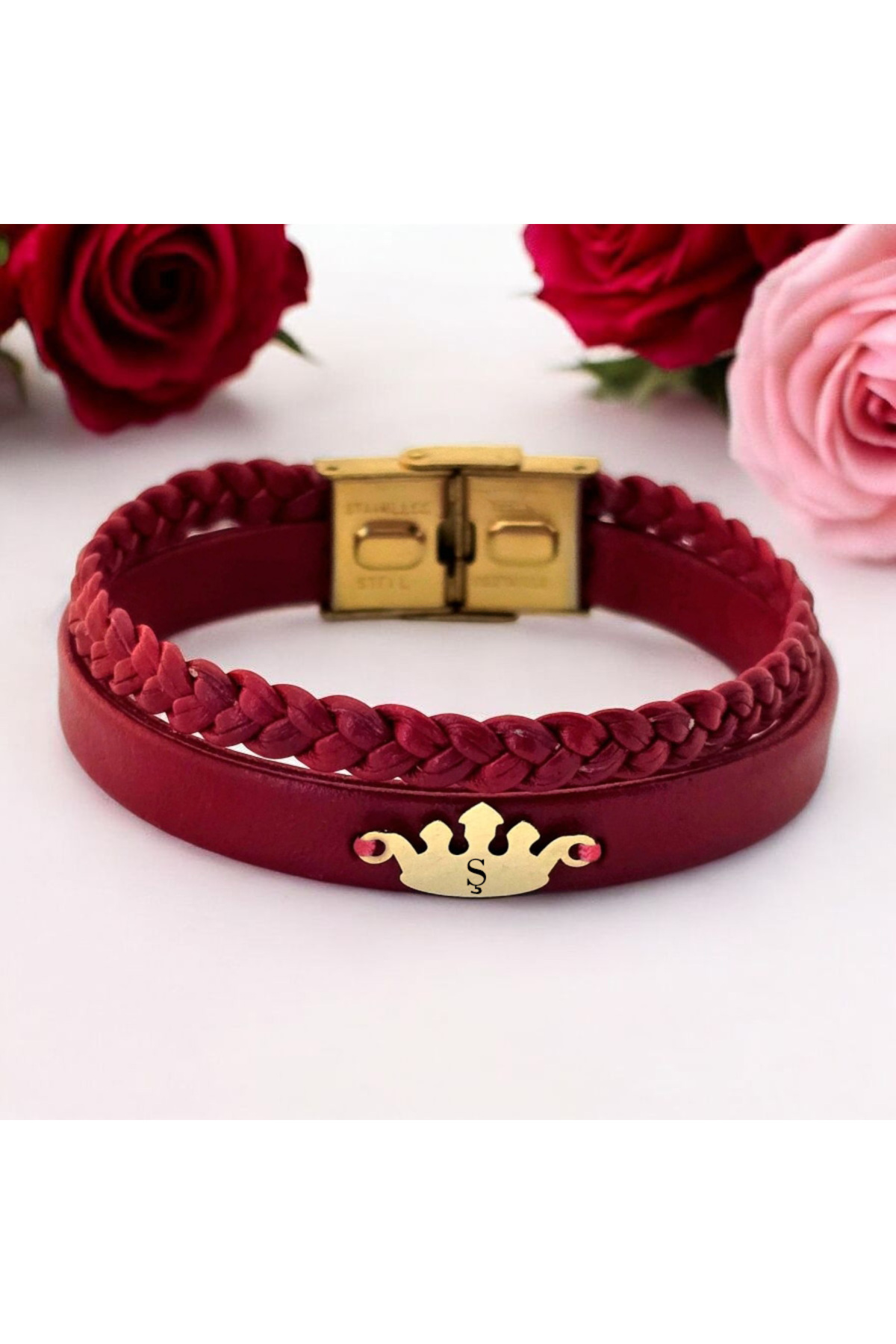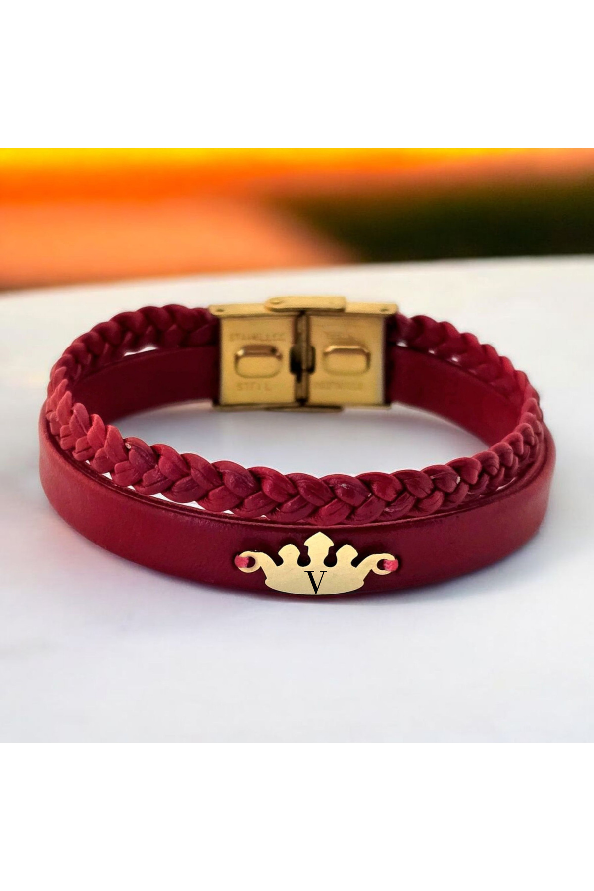 14 Ayar Plakalı Altın B Harfine Özel Taç Motifli Doğal Bordo Derili Hediye Bileklik-648harf 14 Ayar Plakalı Altın B Harfine Özel Taç Motifli Doğal Bordo Derili Hediye Bileklik-648harf 648-krmtdr-fbfg-MO2 22 cm