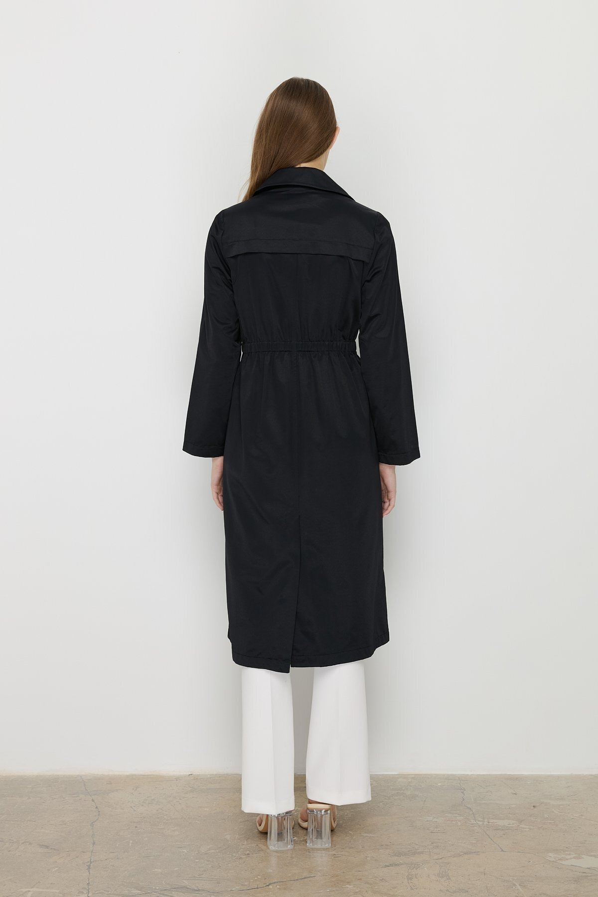 Beli Lastik Detaylı Metal Çıt Çıtlı Trençkot Siyah Beli Lastik Detaylı Metal Çıt Çıtlı Trençkot Siyah 251KP4056NH.1 42