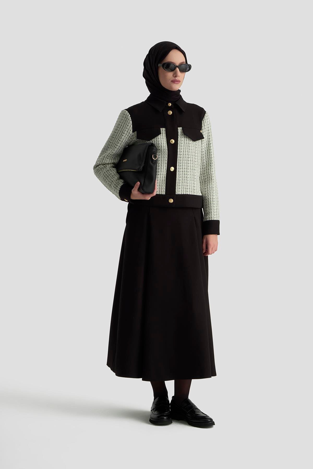 Gold Düğme Detaylı Süs Cepli Etekli Tüvit İkili Takım Siyah 25KT605 Gold Düğme Detaylı Süs Cepli Etekli Tüvit İkili Takım Siyah 25KT605 K25KA6050001 44
