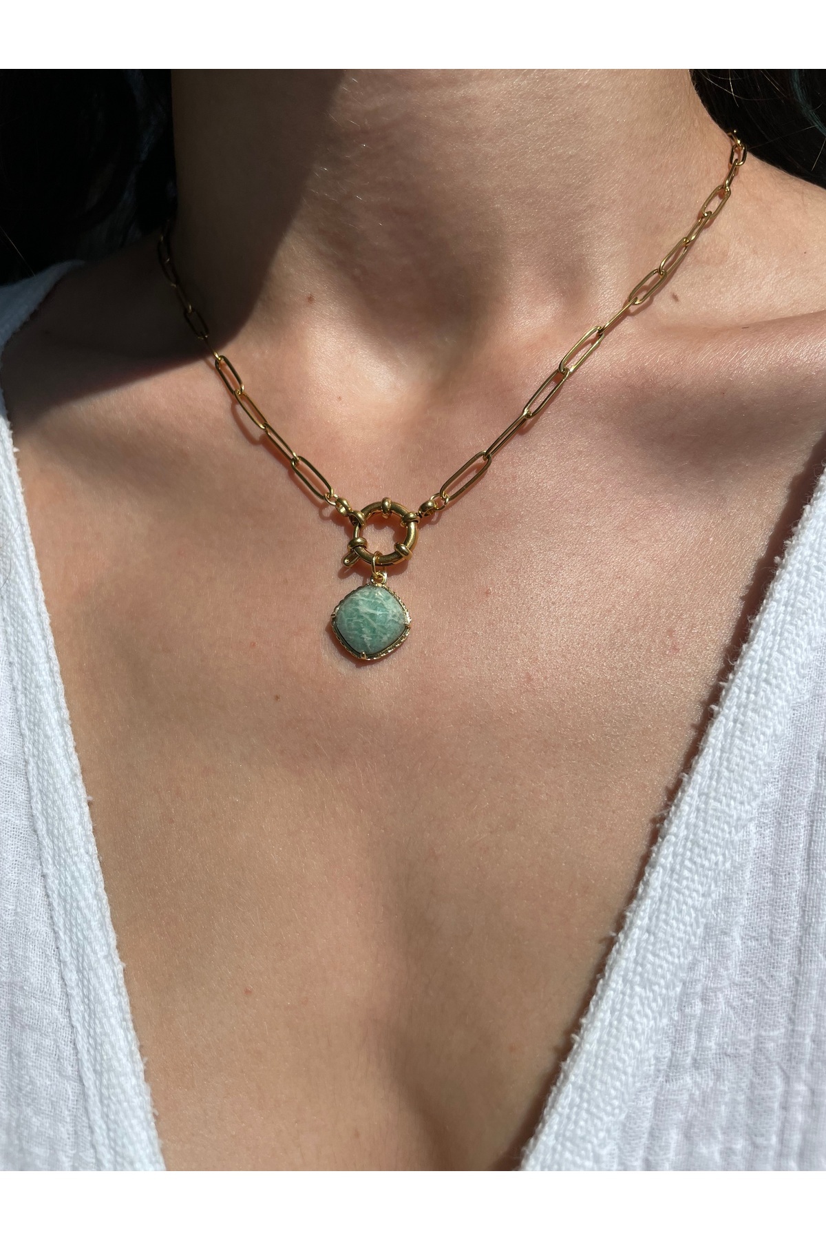 Orijinal Amazonit Taşı Detaylı Gold Çelik Zincir Kolye Orijinal Amazonit Taşı Detaylı Gold Çelik Zincir Kolye 7263636amzntnsnd تک سایز