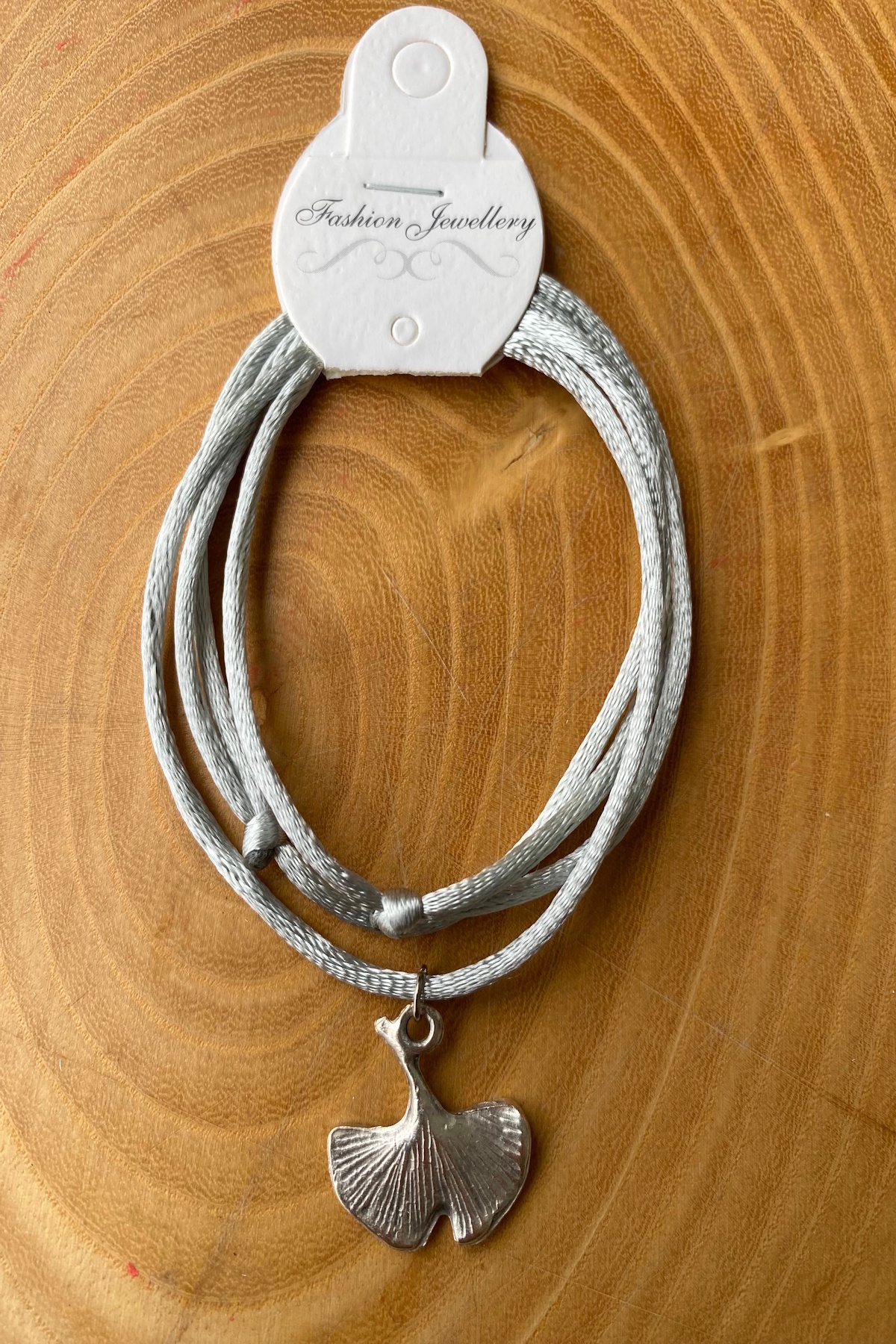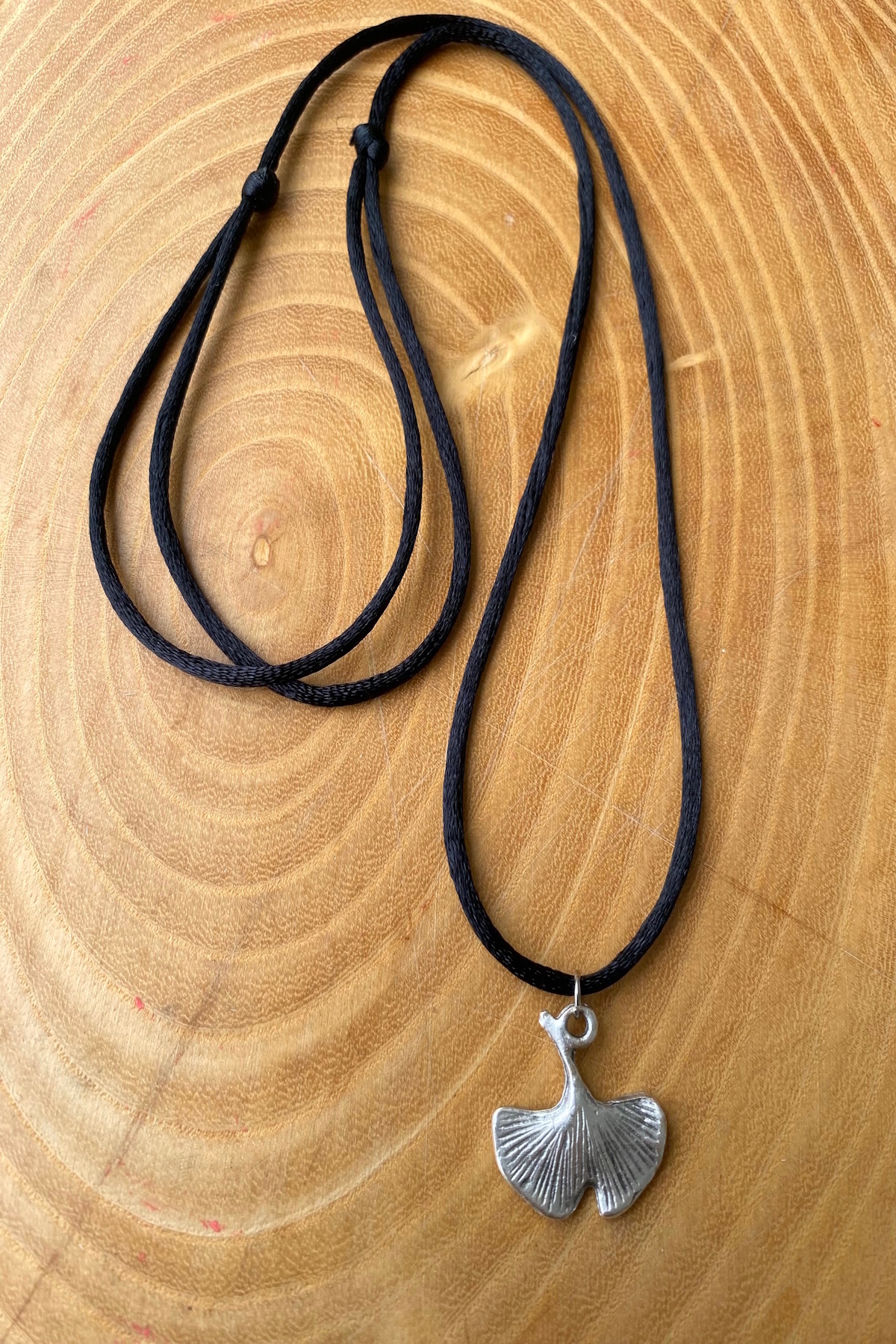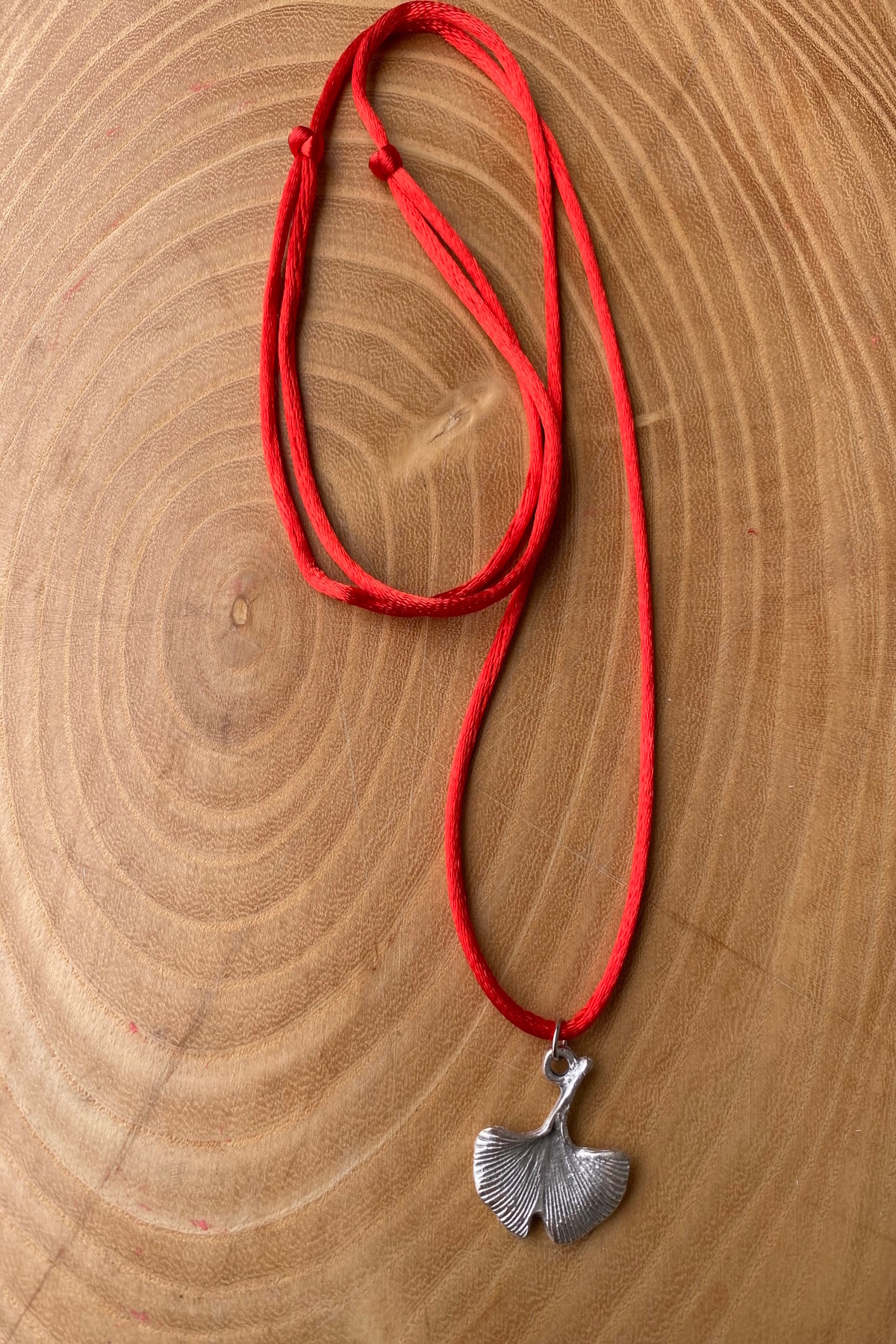 Gümüş Gingko yaprak floş ip kolye Gümüş Gingko yaprak floş ip kolye 200kly5006 75