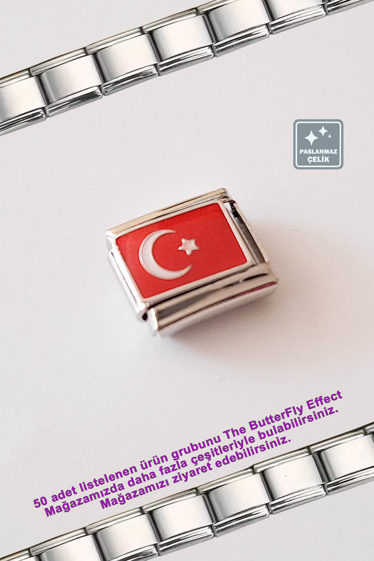 İtalyan Çelik Bileklik - Tekli Charm - Türk Bayrağı İtalyan Çelik Bileklik - Tekli Charm - Türk Bayrağı MISSTBEE009 Standart